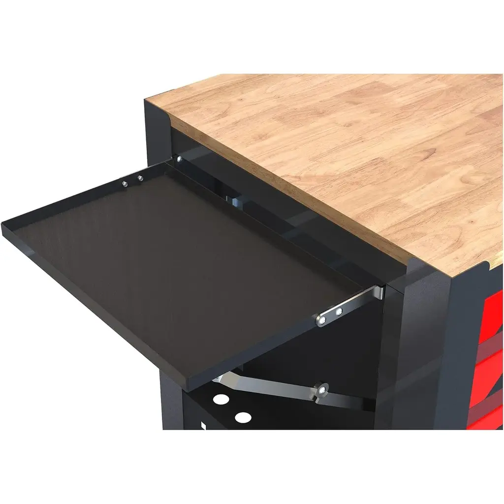 Rolling Tool Cart With 4 Drawers Open Storage Shelf Wooden Top Workbench Tool Box Cart - Red/black