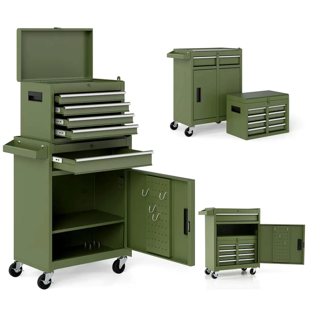 Rolling Tool Chest, 5 Drawer Lockable Tool Cabinet With 4 Wheels, Tool Chest Organizer With Secure Locking System, 2 In 1 Detachable Tool Box Storage