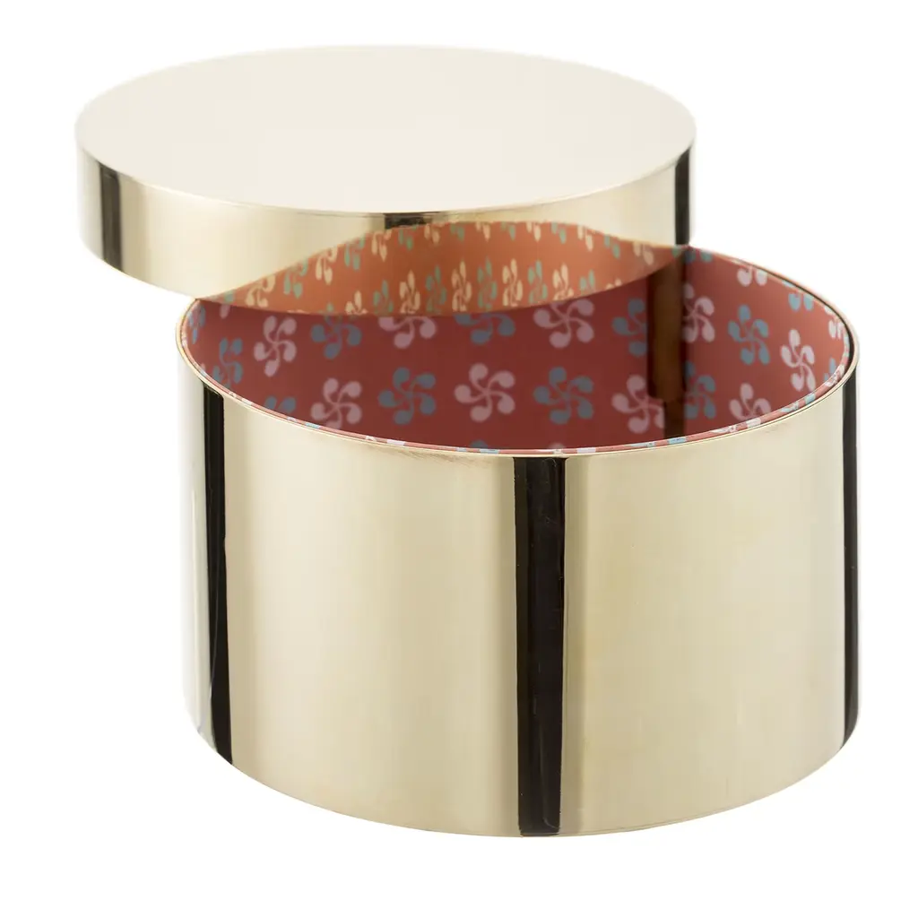 The perfect round brass box with a zippered top for storing small items in style. This high-quality box is perfect for storing jewelry, trinkets, and other small items. With its elegant design and sturdy construction, it's sure to become a cherished addition to any space.