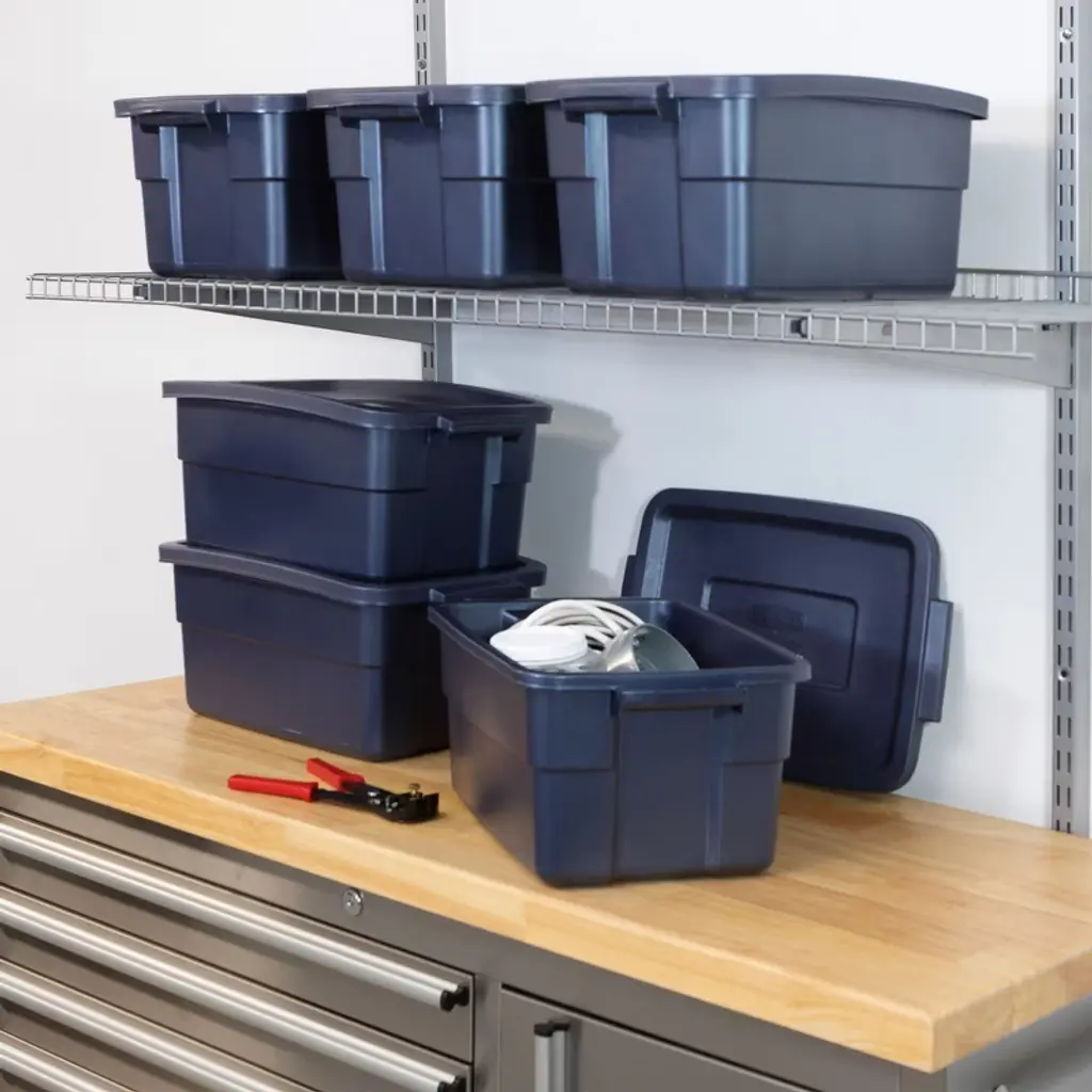If you're tired of storage containers that crack under the weight of being stacked and stored, it's time to make a change. The Rubbermaid Roughneck 3 Gallon Rugged Storage Tote is built to be endlessly reusable. Made of impact-resistant material, these totes withstand harsh temperature changes from 0 to 110 degrees, so you don't have to worry about your items being impacted by the cold or hot weather. These rugged containers are equipped with a stay tight lid that protects contents from moisture and pests no matter where you use or store it, making long-term storage a simple option. They are stackable without cracking or buckling, are easy to carry, and are washable for easy maintenance. Outer dimensions (L x W x H) measure 15.69 x 10.63 x 7 inches and inner dimensions (L x W x H) measure 11.5 x 7.5 x 6.69 inches. A versatile storage solution for use season after season, this 6-pack of Roughneck 3 Gallon Rugged Storage Totes from Rubbermaid is a smart choice.