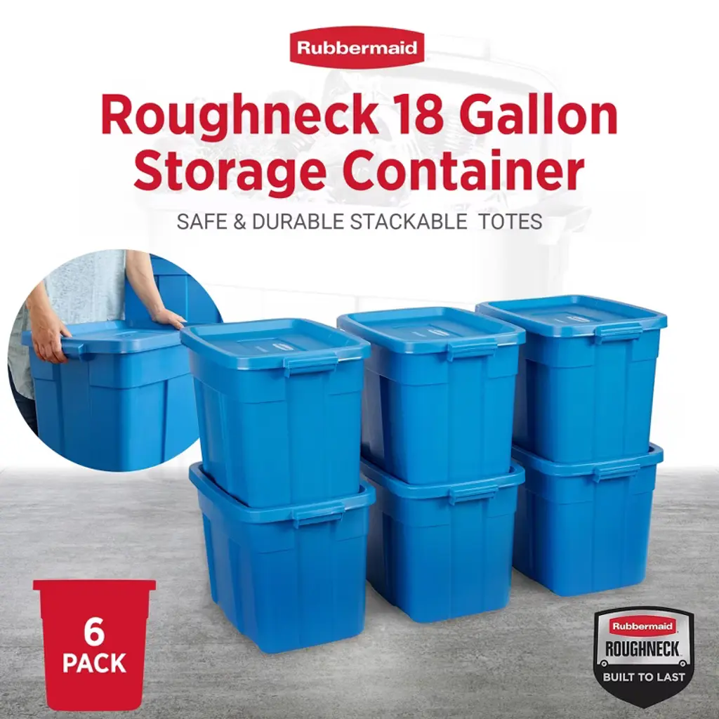 Rubbermaid Roughneck Tote 18 Gallon Storage Container, Heritage Blue (6 Pack)