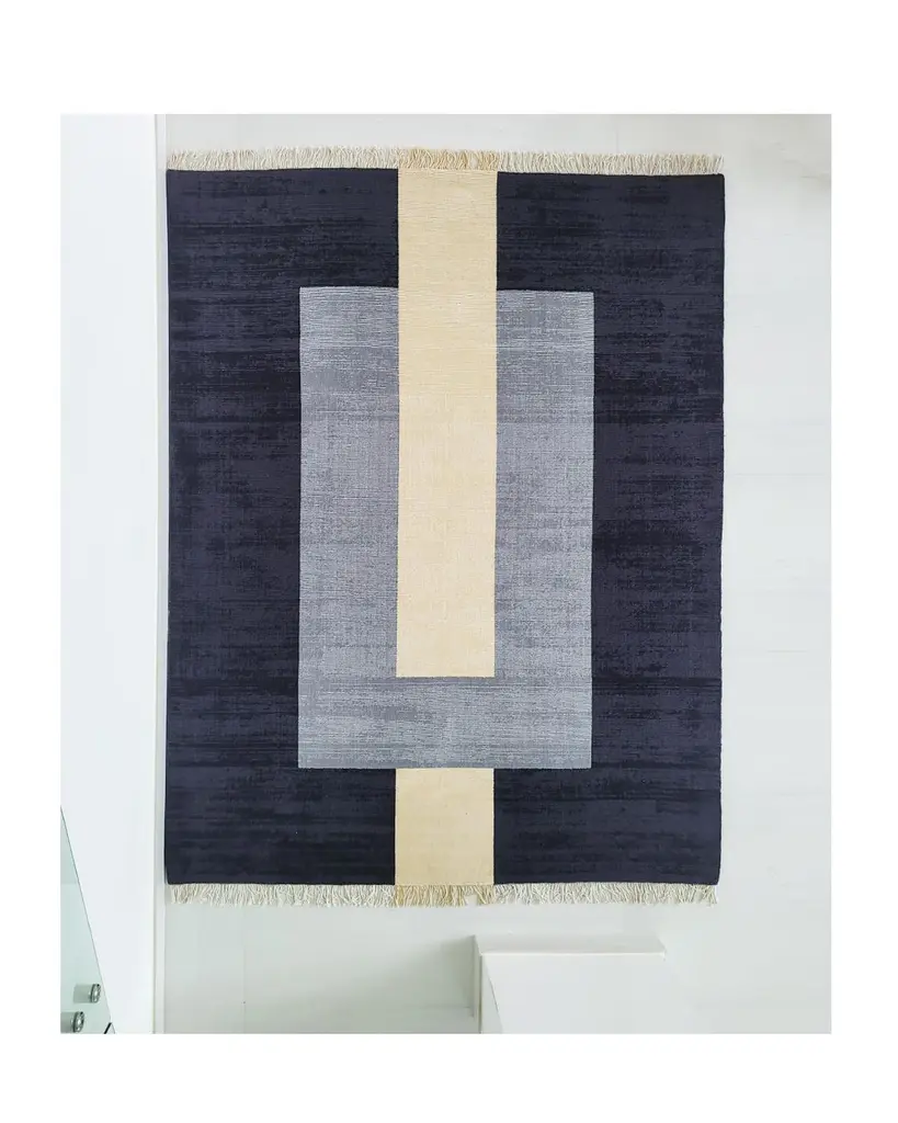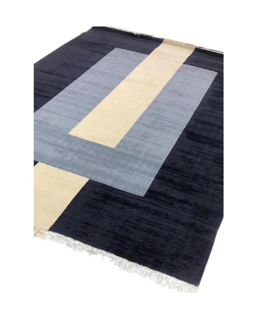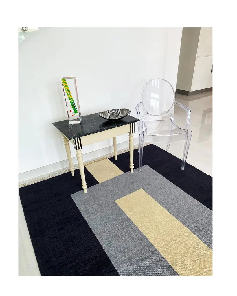 Rug Plain Grey - Wool Modern Geometric Flatweave Black Grey Cream Beige Boxes