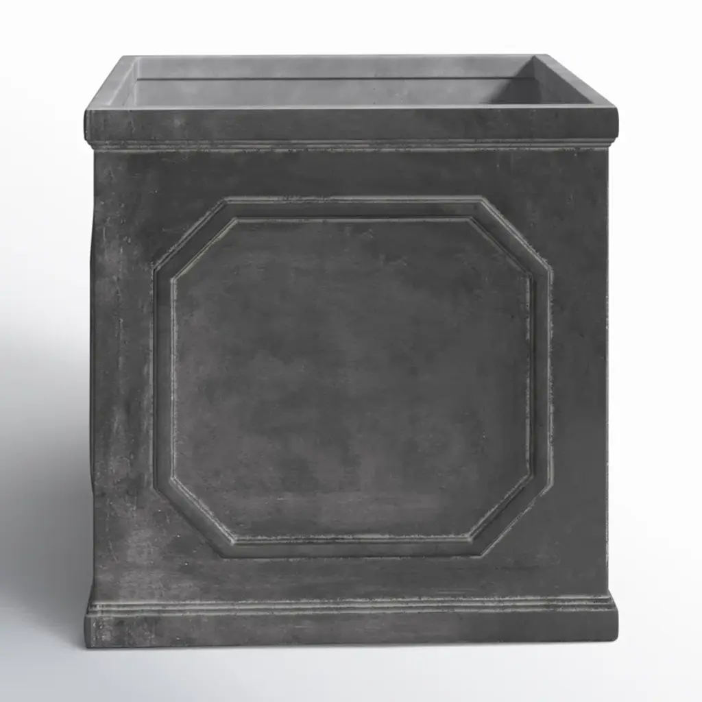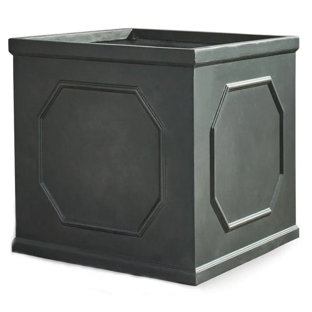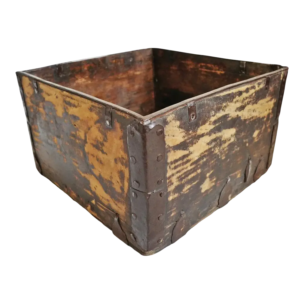 Iron octagon planter box with X design and rivet details. Rusty sealed finish for indoors or out. Opening measures 21.5 x 25. No drainage hole. Each slightly unique in patina and distress.