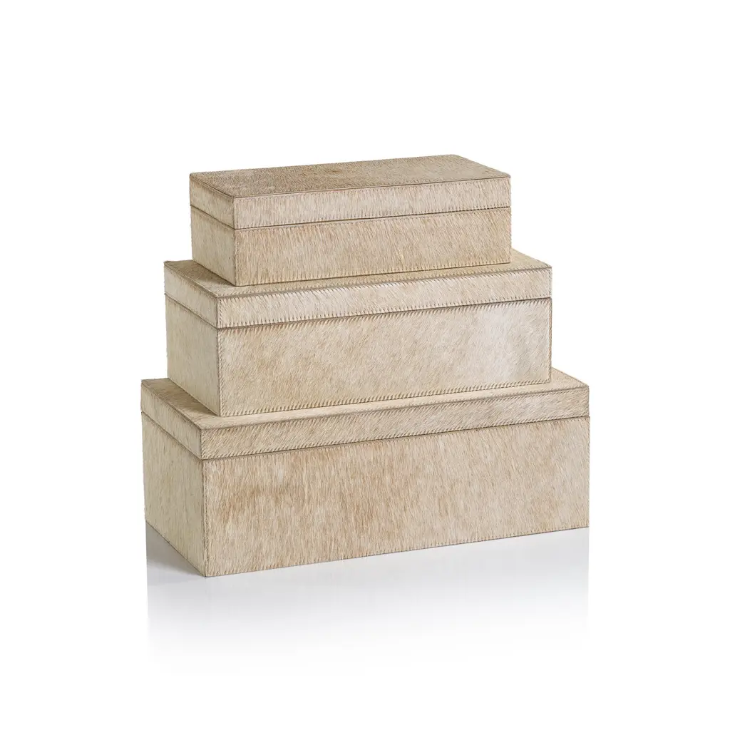 Rutbeek Tan Hair-On-Hide Leather Decorative Box, Small