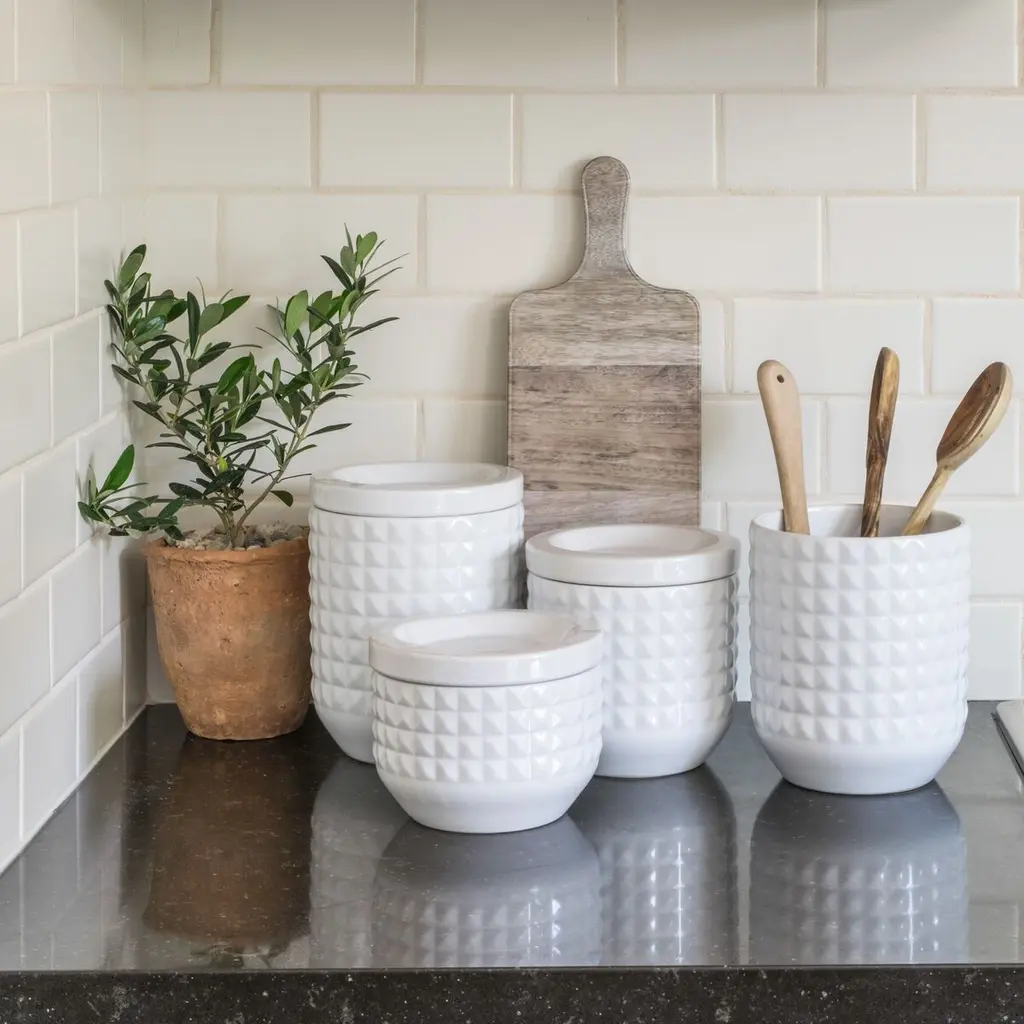 S/3 Diamond Stoneware Small Canister, White