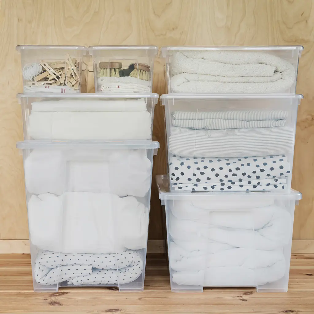 SAMLA Box with lid - clear 15 ¼x11x5 ½ "/3 gallon. Put an end to searching for things you stored away - the transparent plastic reveals the contents inside the box so you can easily find what you are looking for. SAMLA series is dimensioned to fit shelving units, as IVAR and BROR.