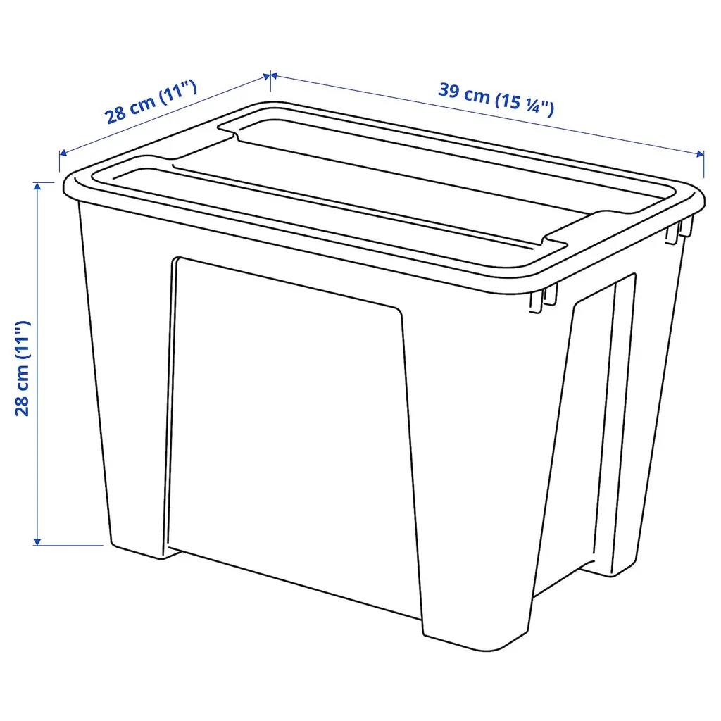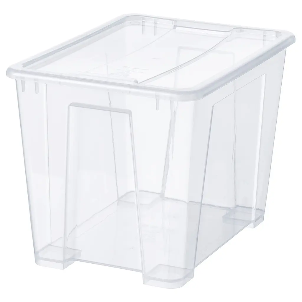 SAMLA Box with lid - clear 15 ¼x11x11 "/6 gallon. Put an end to searching for things you stored away - the transparent plastic reveals the contents inside the box so you can easily find what you are looking for. Part of the SAMLA series where all sizes are dimensioned to each other.