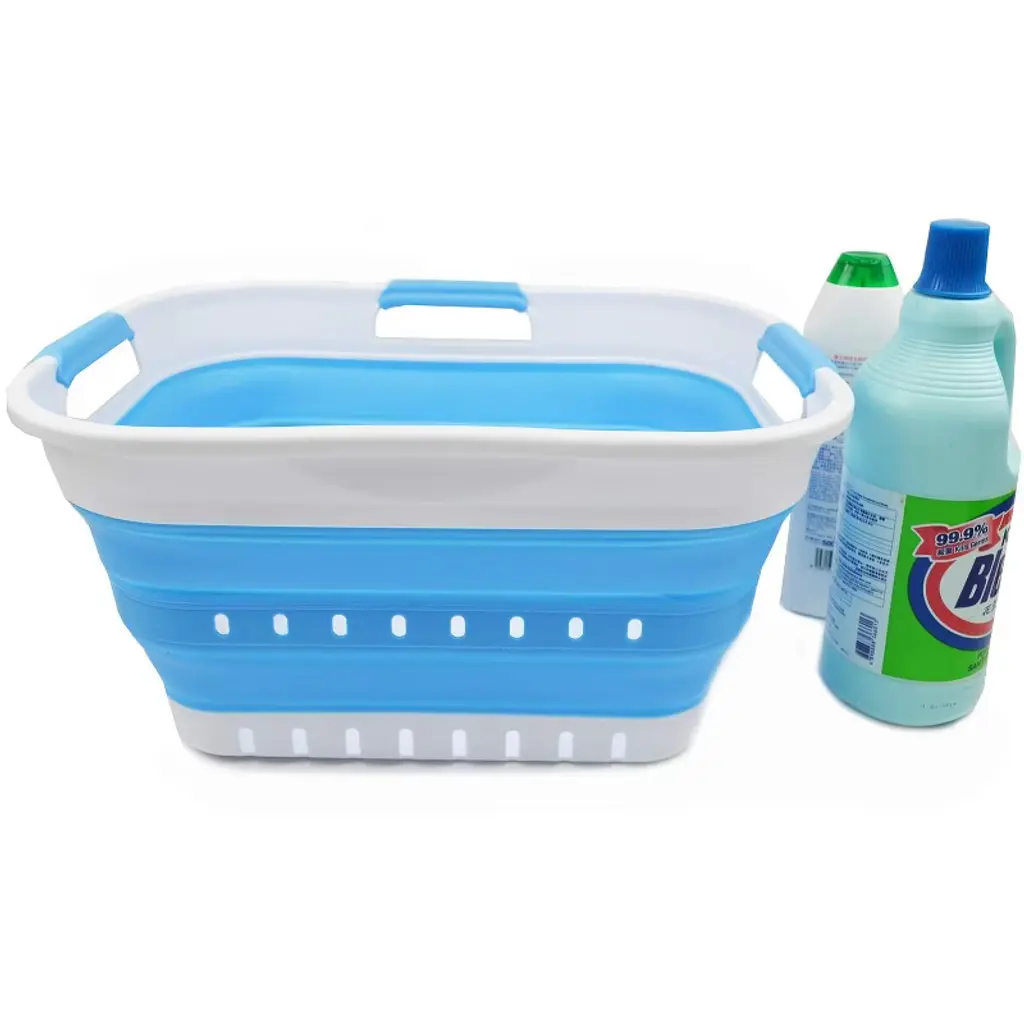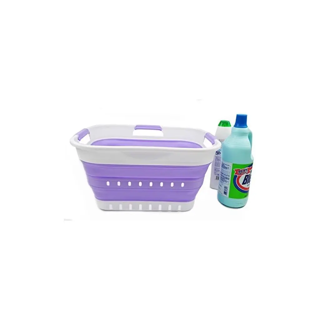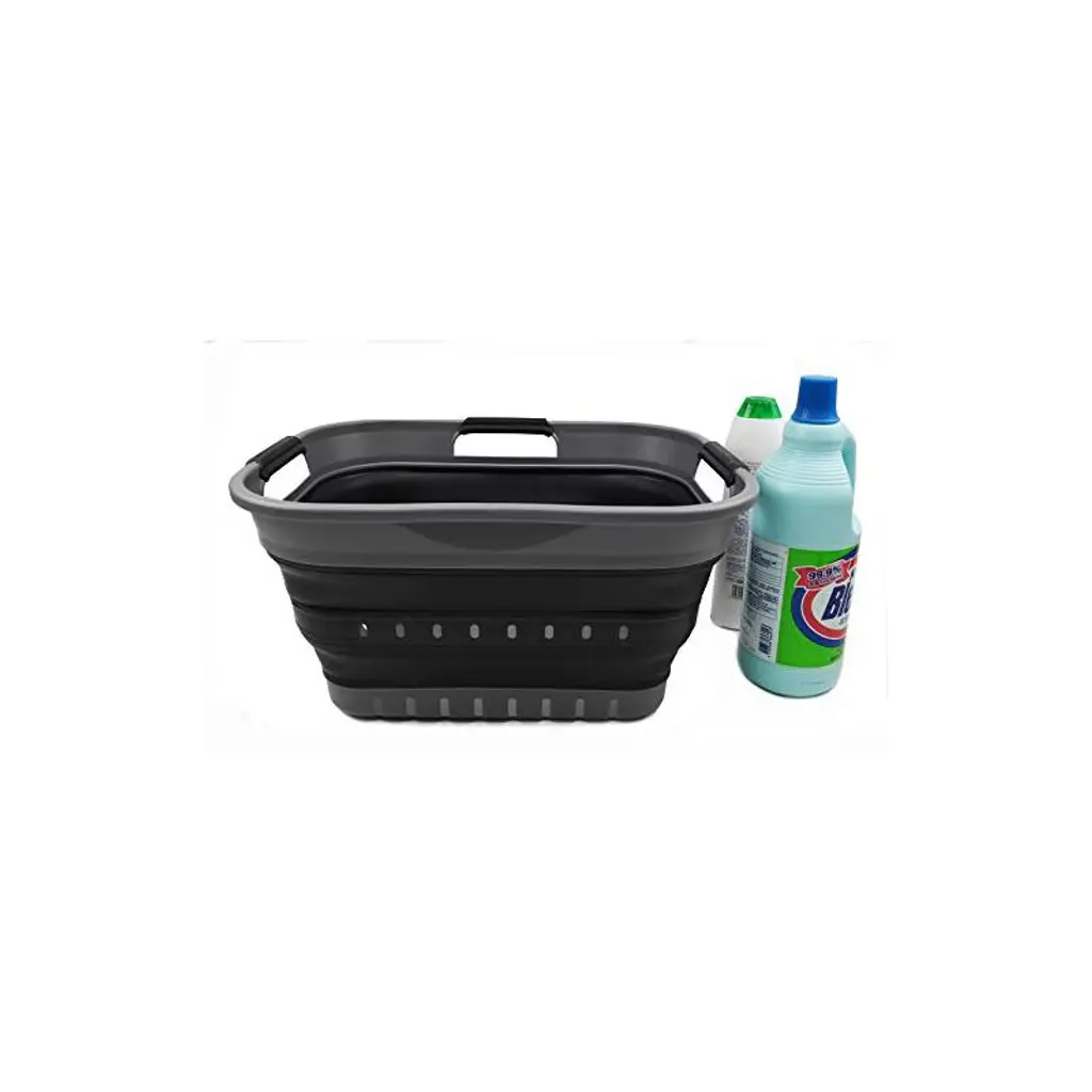 Brand: SAMMARTFeatures: Patent: US 9,926,105 B2 ; DE 20 2014 101 047 U1 ; ZL 2014 1 0386688.1BPA Free. User friendly by simply pop-up to open when using and collapses to flat for space saving.Space saving with Expanded size: 17.4 x 13 x 9 (h) inches and its height just 2.8 inches after folds, save over 70% space when storageComfort grip handles for easy carryPerfect as storage container for toys, clothes and keep in the trunk of your carDetails: **Collapsible TPE/PP Laundry Basket **Brand: SAMMART **Material: TPE & PP **Expanded size: 17.4 x 13 x 9 inches **Collapsed size: 17.4 x 13 x 2.8 inches **Capacity: 19L (5 gallon).