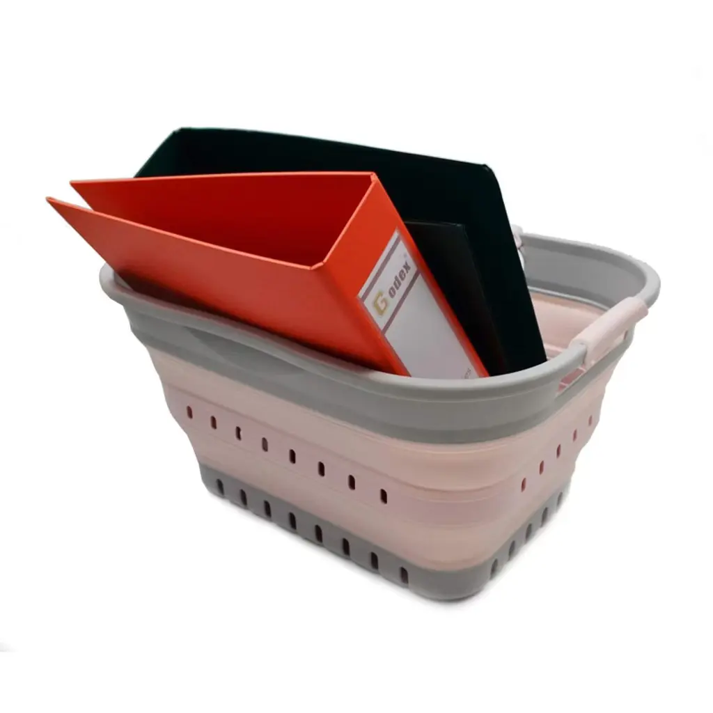 Sammart 19l (5 Gallon) Super Mini Collapsible 3 Handled Plastic Basket, White/grey