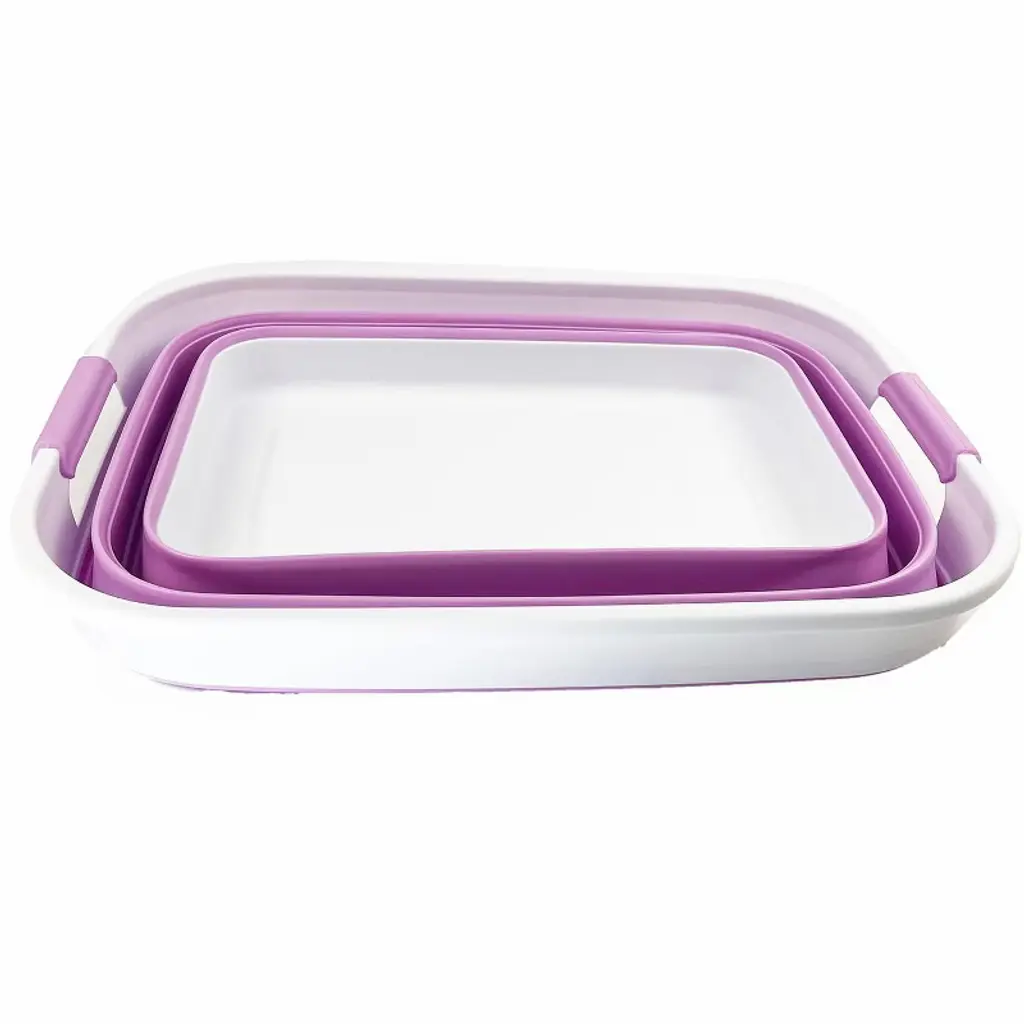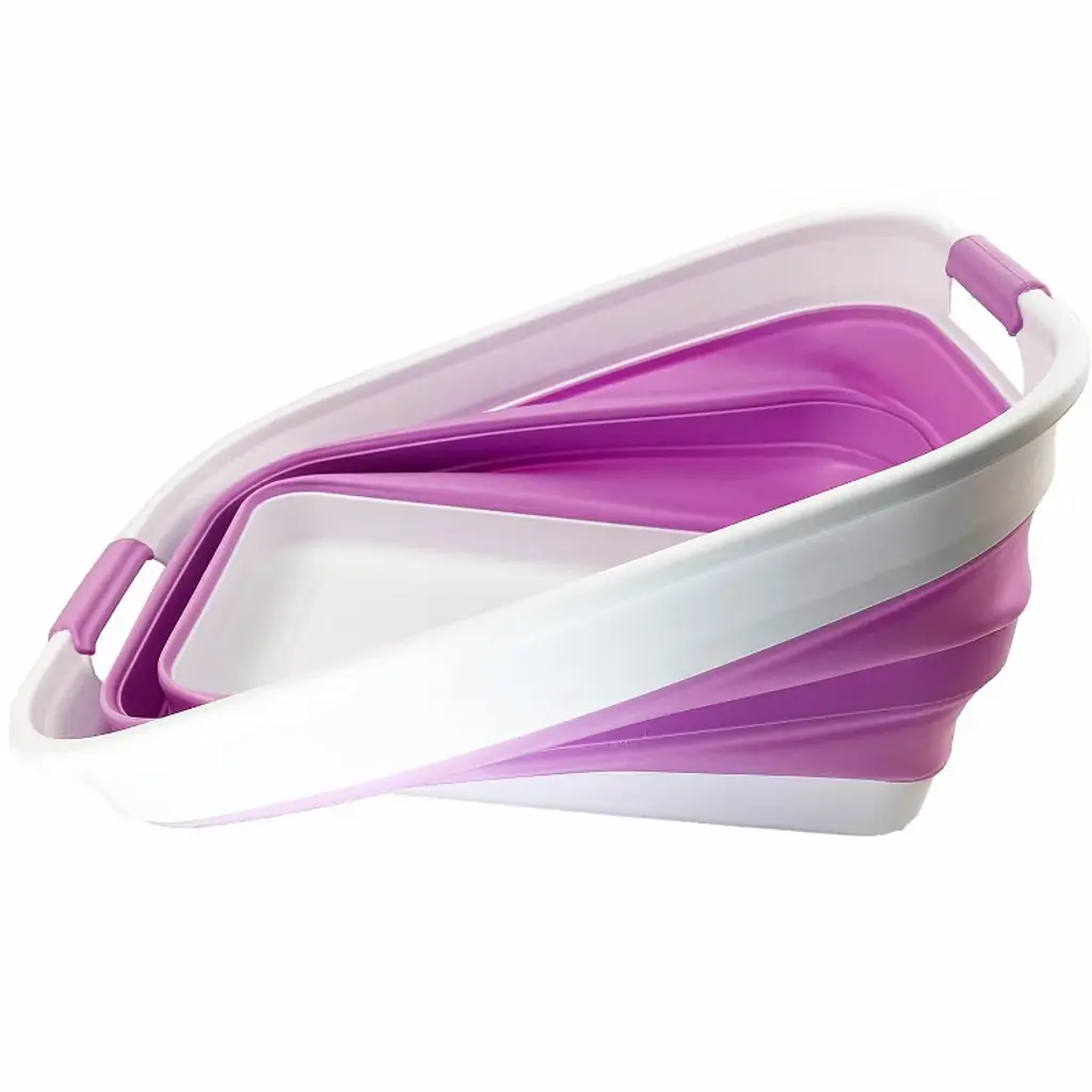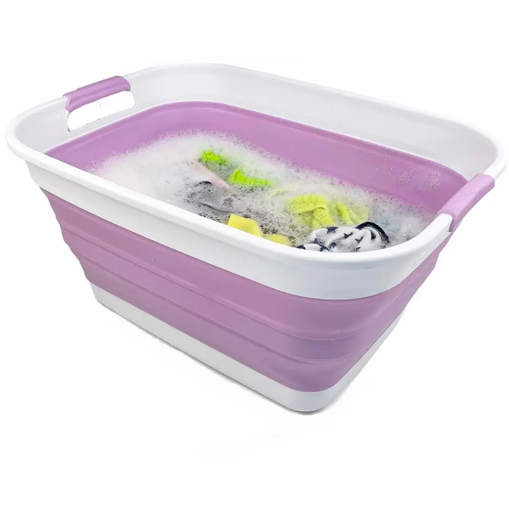 Brand: SAMMARTColor: White/Pale PurpleFeatures: Patent: US 9,926,105 B2 ; DE 20 2014 101 047 U1 ; ZL 2014 1 0386688.1BPA Free. User friendly by simply pop-up to open when using and collapses to flat for space saving.Space saving with Expanded size: 19.6 x 15 x 9.7 (h) inches and its height just 2.2 inches after folds, save over 70% space when storageComfort grip handles for easy carryPerfect for icing beverages, bathing pets, soaking & hauling laundry and storage container for toys, clothes and keep in the trunk of your car.Details: **Collapsible TPE/PP Laundry Basket **Brand: SAMMART **Material: TPE & PP **Expanded size: 19.6 x 15 x 9.7 (h) inches **Collapsed size: 19.6 x 15 x 2.2 (h) inchesItem Condition: NewUPC: 843050122120