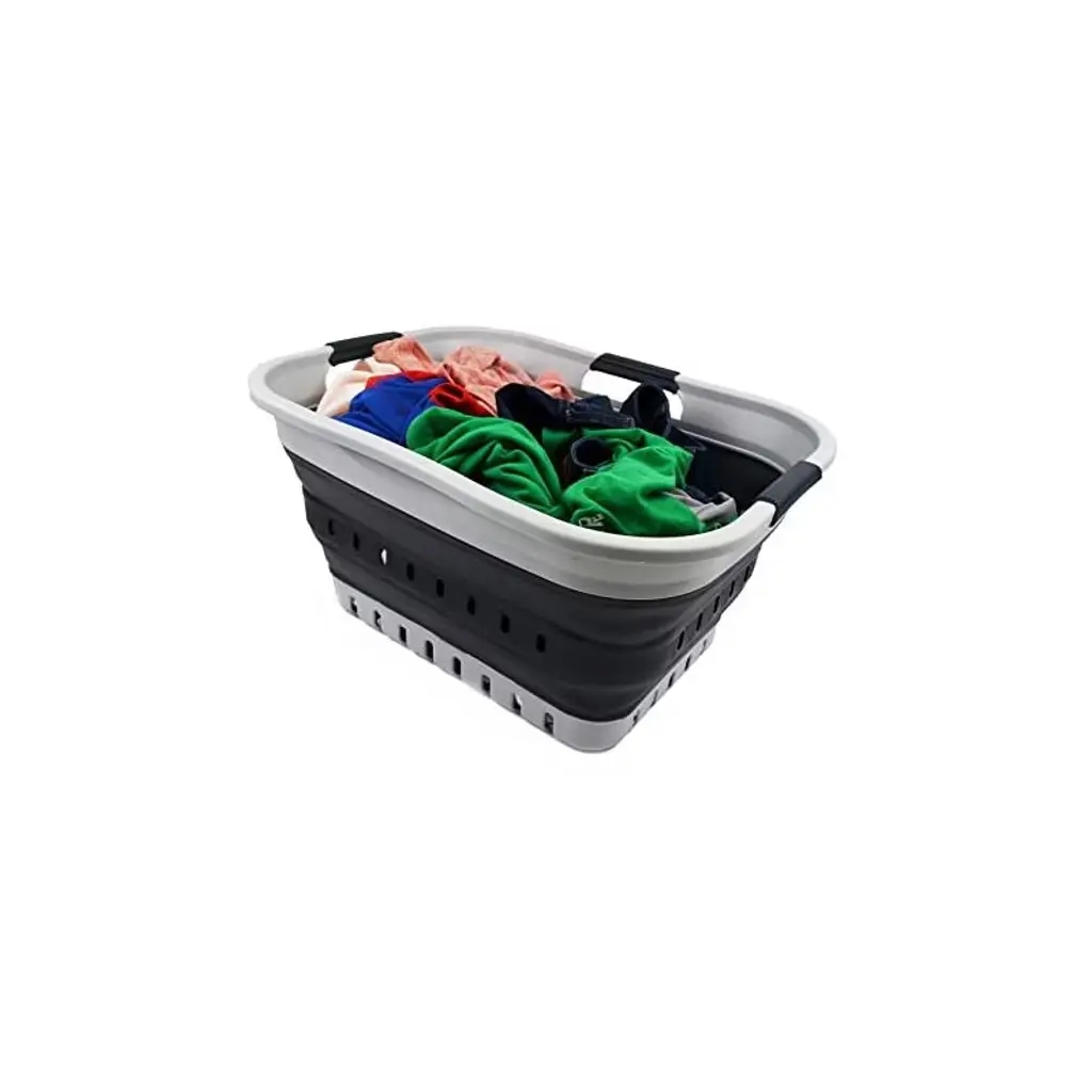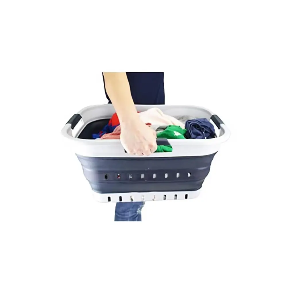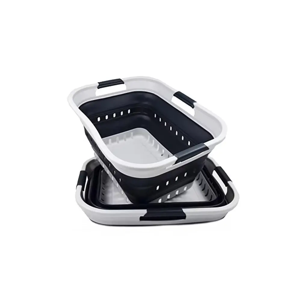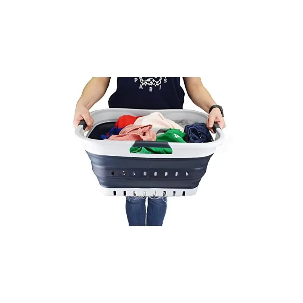 Brand: SAMMARTFeatures: Patent: US 9,926,105 B2 ; DE 20 2014 101 047 U1 ; ZL 2014 1 0386688.1BPA Free.User friendly by simply pop-up to open when using and collapses to flat for space savingSpace saving with Expanded size: 20 x 15.2 x 10(h) inches and its height just 2.7 inches after folds, save over 70% space when storagePerfect for Camping and LaundryPerfect for laundry and storage container for toys, clothes and keep in the trunk of your carComfort grip handles for easy carryDetails: **Set of 2 Collapsible TPE/PP Laundry Basket **Brand: SAMMART **Material: TPE & PP **Expanded size: 20 x 15.2 x 10 inches **Collapsed size: 20 x 15.2 x 2.7 inches