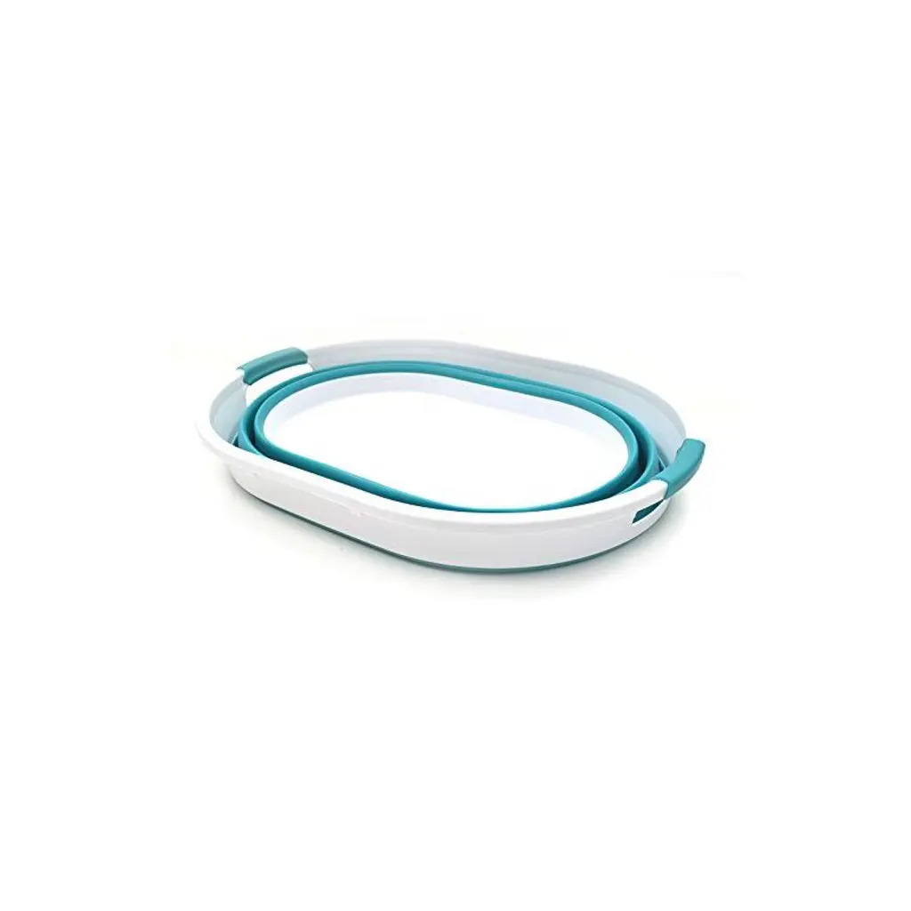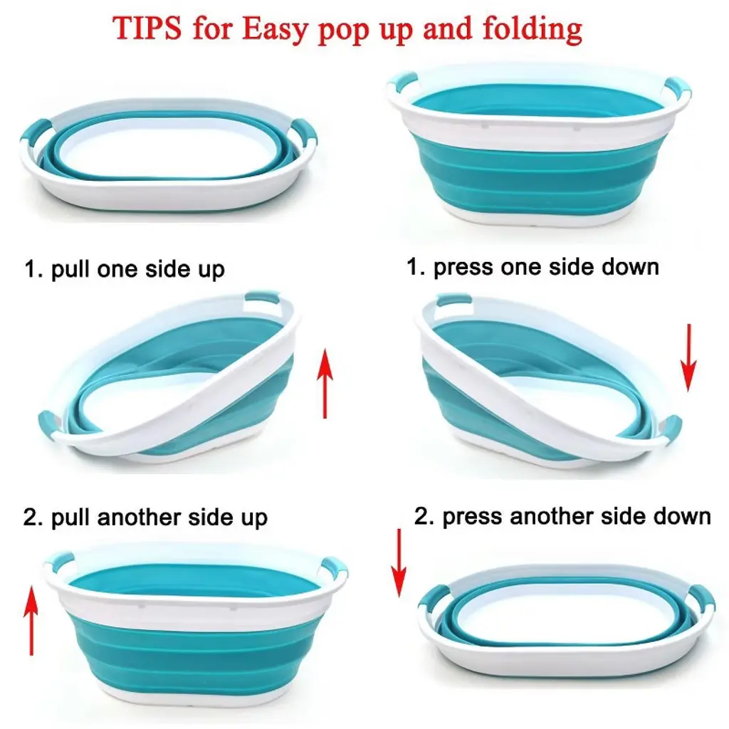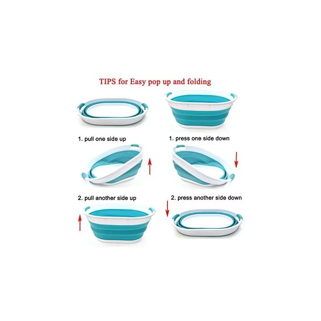 Brand: SAMMARTFeatures: BPA FreeUser friendly by simply pop-up to open when using and collapses to flat for space saving.Space saving with Expanded size: 24 x 17.7 x 10.75(h) inches and its height just 3.1 inches after folds, save over 70% space when storageComfort grip handles for easy carryPerfect for icing beverages, bathing pets, soaking & hauling laundry and storage container for toys, clothes and keep in the trunk of your car.Details: **Collapsible TPE/PP Oval Tub **Brand: SAMMART **Material: TPE & PP **Expanded size: 24 x 17.7 x 10.75 inches **Collapsed size: 24 x 17.7 x 3.1 inches