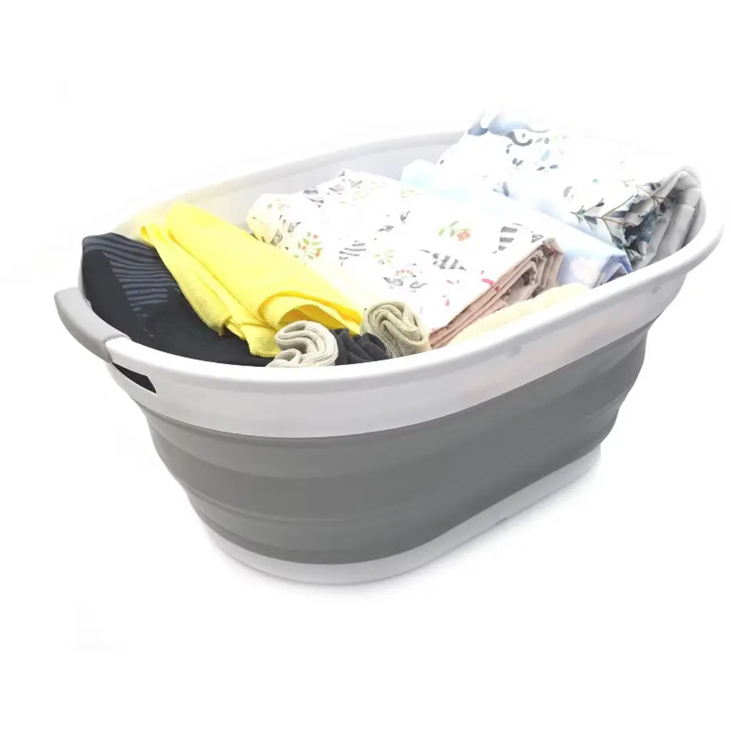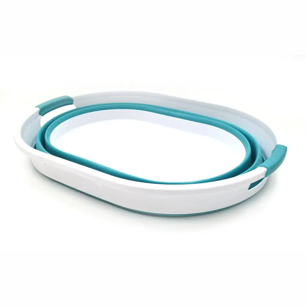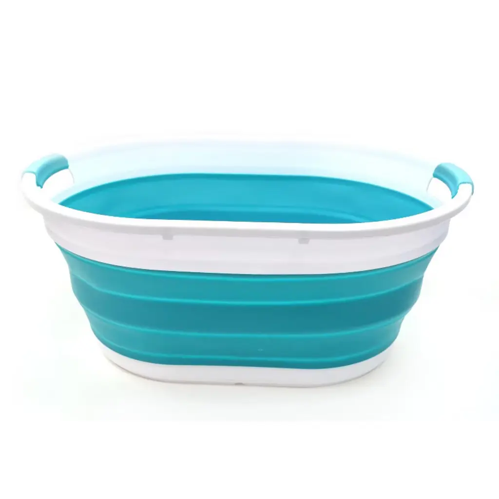 Brand: SAMMARTFeatures: BPA FreeUser friendly by simply pop-up to open when using and collapses to flat for space saving.Space saving with Expanded size: 24 x 17.7 x 10.75(h) inches and its height just 3.1 inches after folds, save over 70% space when storageComfort grip handles for easy carryPerfect for icing beverages, bathing pets, soaking & hauling laundry and storage container for toys, clothes and keep in the trunk of your car.Details: **Collapsible TPE/PP Oval Tub **Brand: SAMMART **Material: TPE & PP **Expanded size: 24 x 17.7 x 10.75 inches **Collapsed size: 24 x 17.7 x 3.1 inches