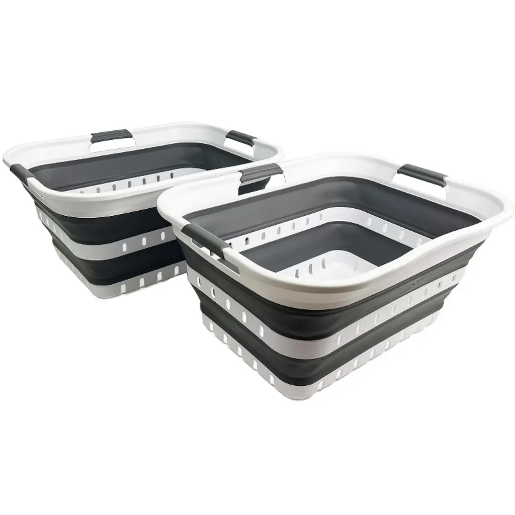 Sammart 42l (11 Gallon) Set Of 2 Collapsible Plastic Laundry Basket, White/steel Grey