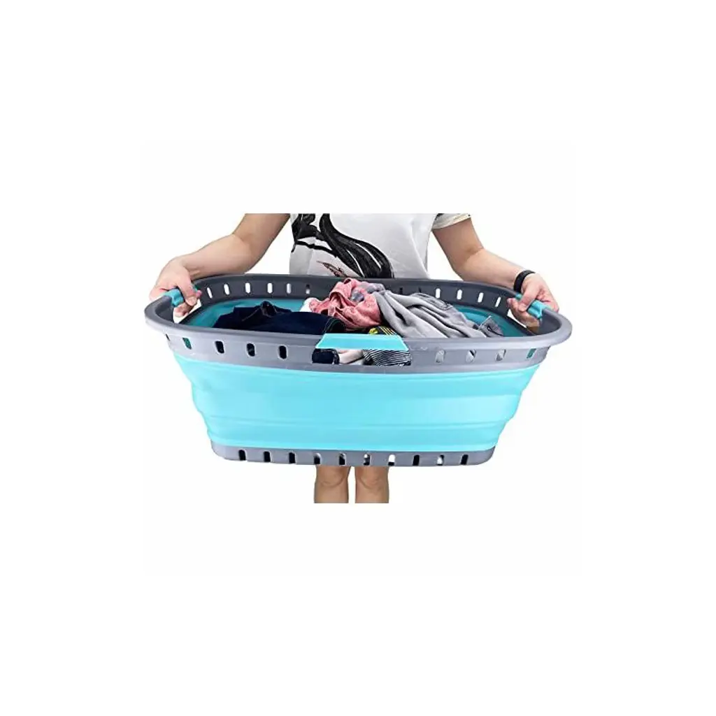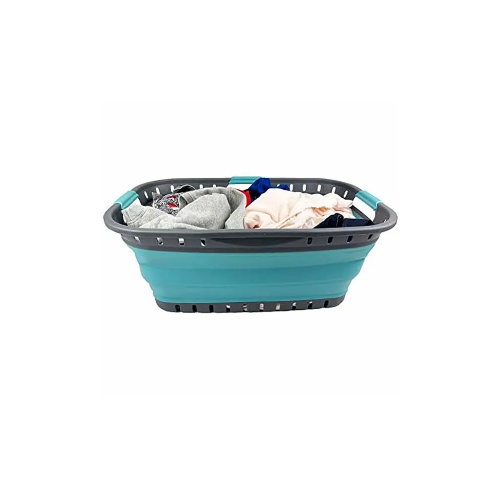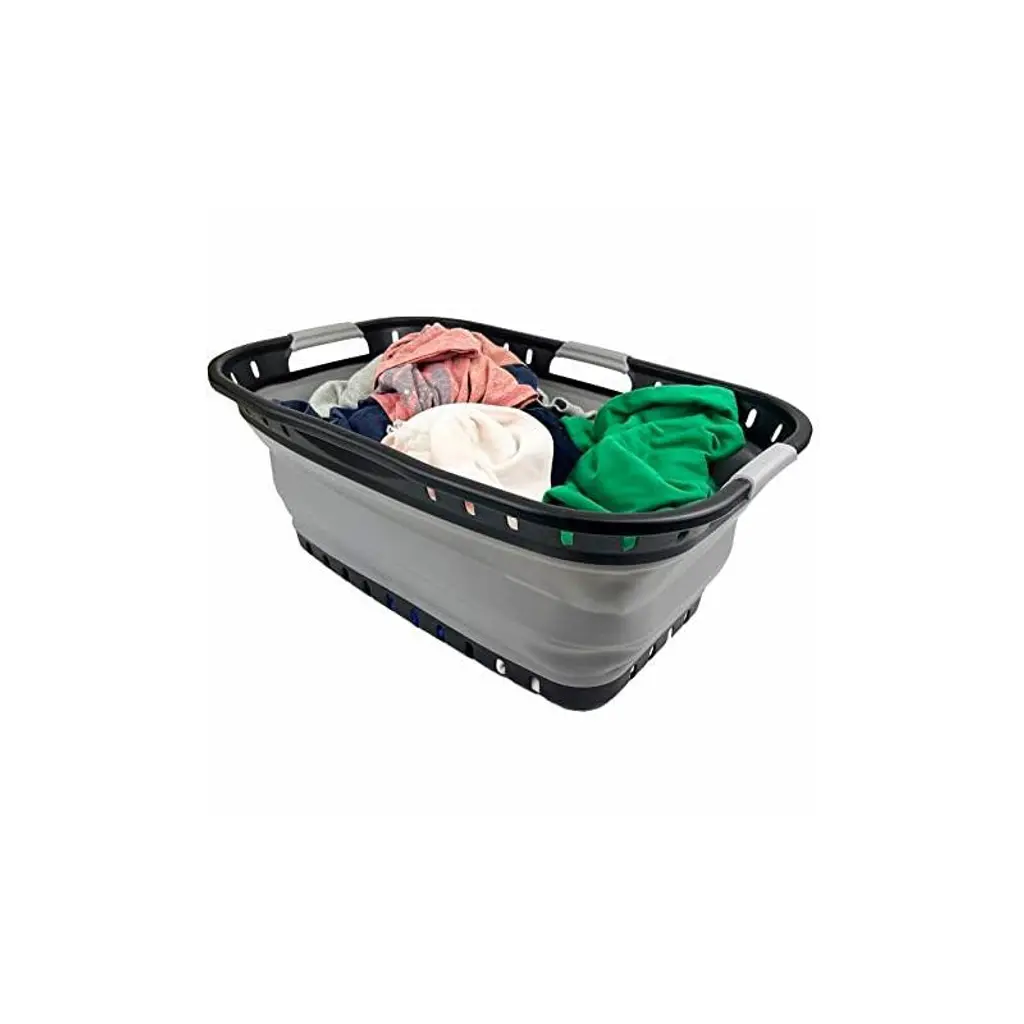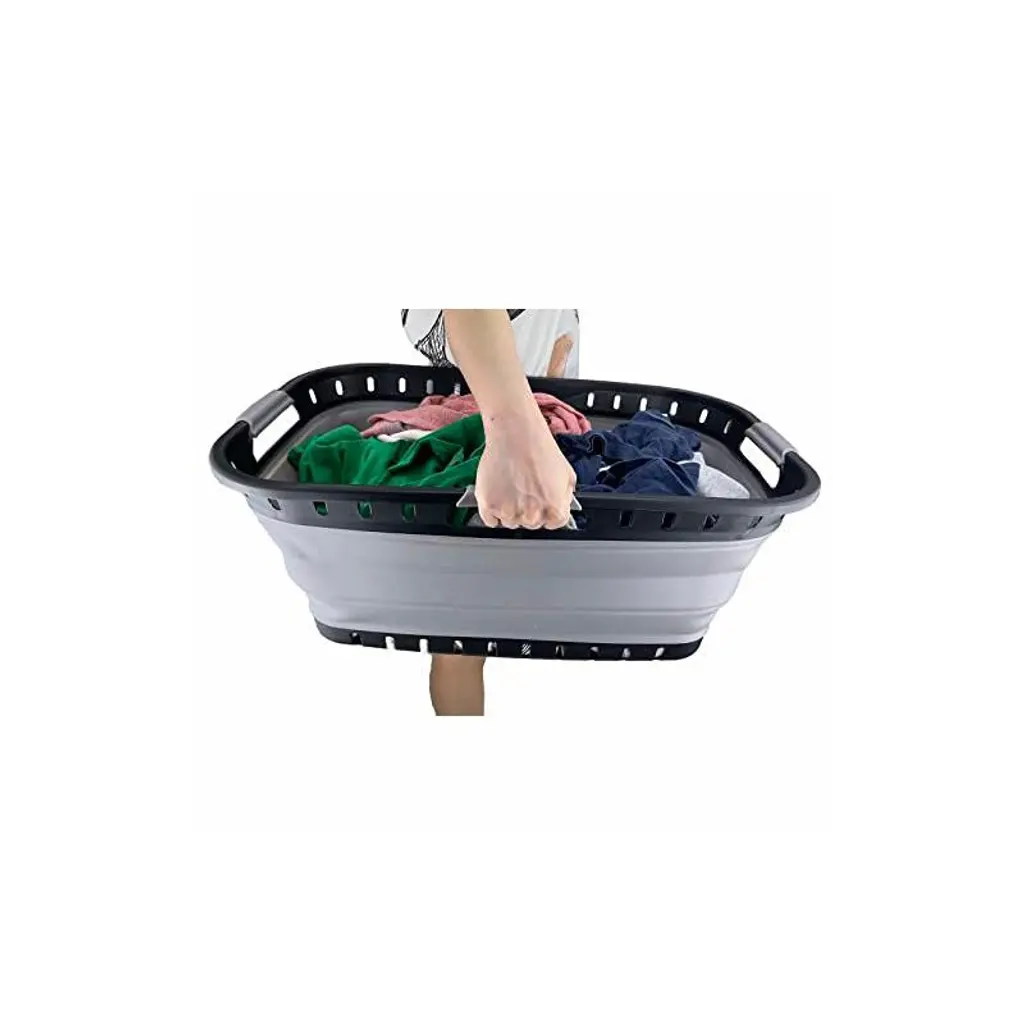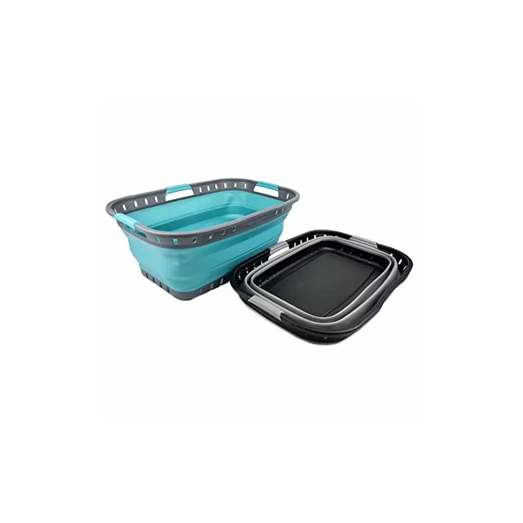 Brand: SAMMARTFeatures: BPA Free.User friendly by simply pop-up to open when using and collapses to flat for space savingSpace saving with Expanded size: 25.4 x 17.3 x 10.2(h) inches and its height just 2.7 inches after folds, save over 70% space when storageComfort grip handles for easy carryPerfect for hauling laundry and storage container for toys, clothes and keep in the trunk of your carDetails: **Set of 2 Collapsible TPE/PP Laundry Basket