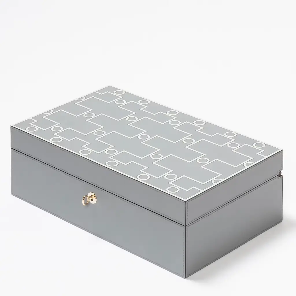 With patterns that directly take inspiration from characterizing details found in suggestive corners of Venice, these printed leather boxes are a celebration of the iconic city on water. Featuring different sizes, shapes, and purposes, the San Marco collection of boxes combines historic legacy with modernity, and is the expression of the artistic and cultural vivacity that marked, and still does, this city’s history. Print only available as showcased.