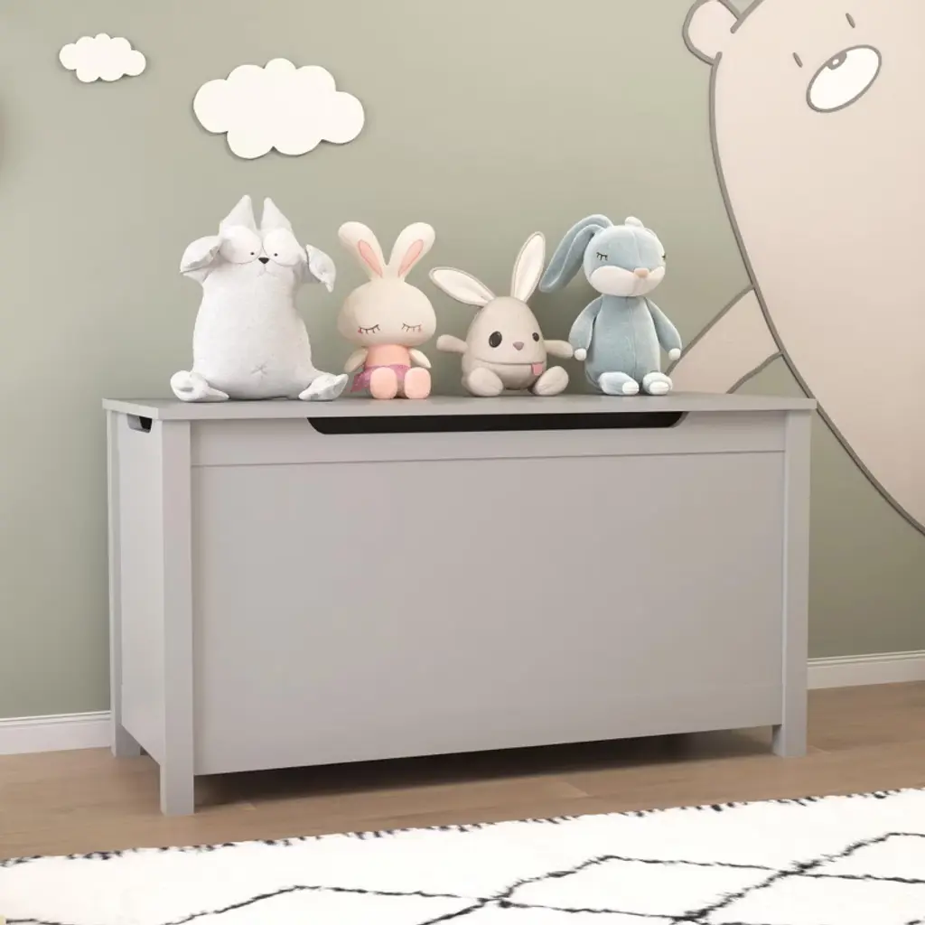 Sapphtopaz Storage Bench Kids Wooden Toy Box Toy Organizer With Safety Hinged Lid, Gray
