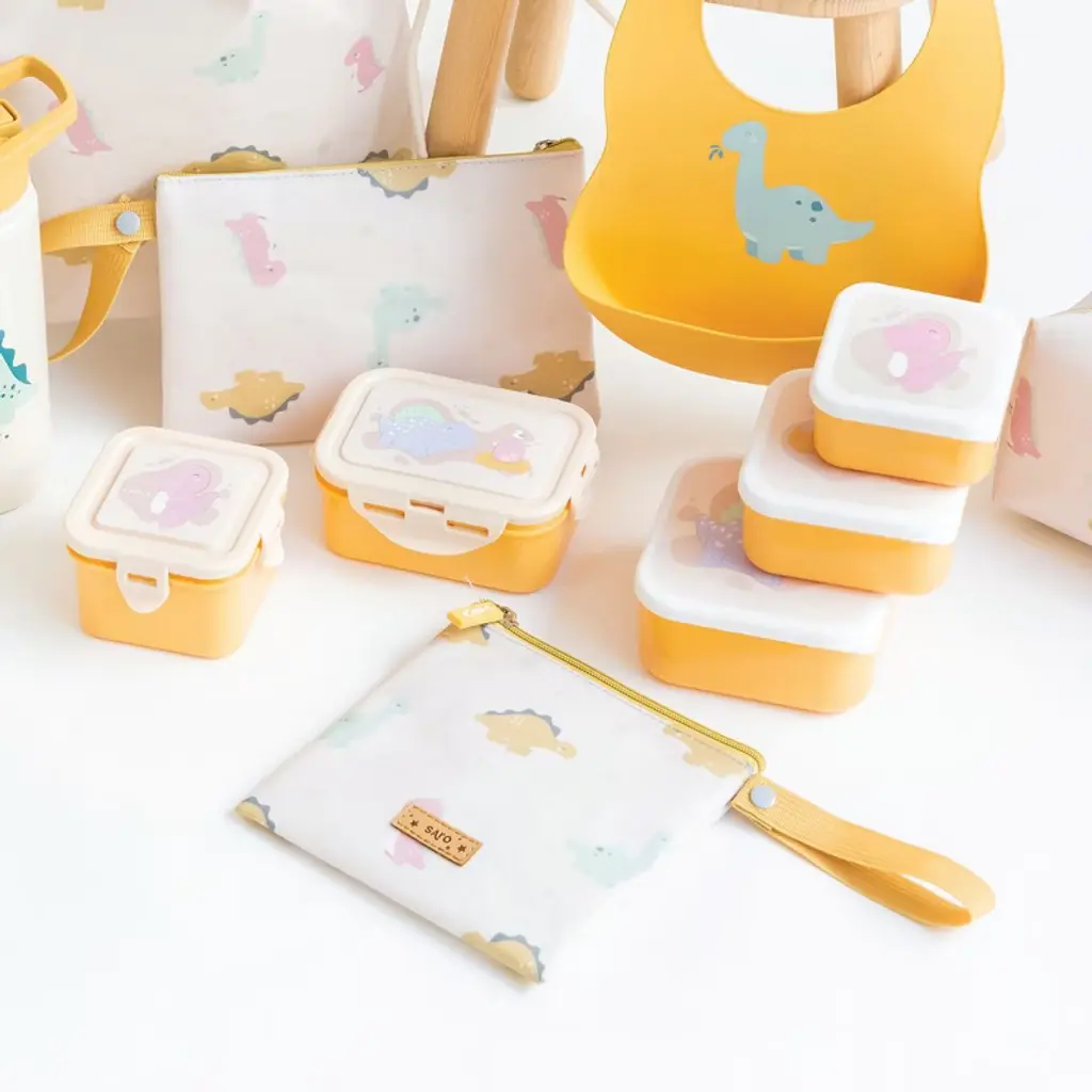 Saro Kids Mustard Horizontal Snack Pouch - Reusable, Water-resistant Food Storage For Girls & Boys, Lunchbox Essential