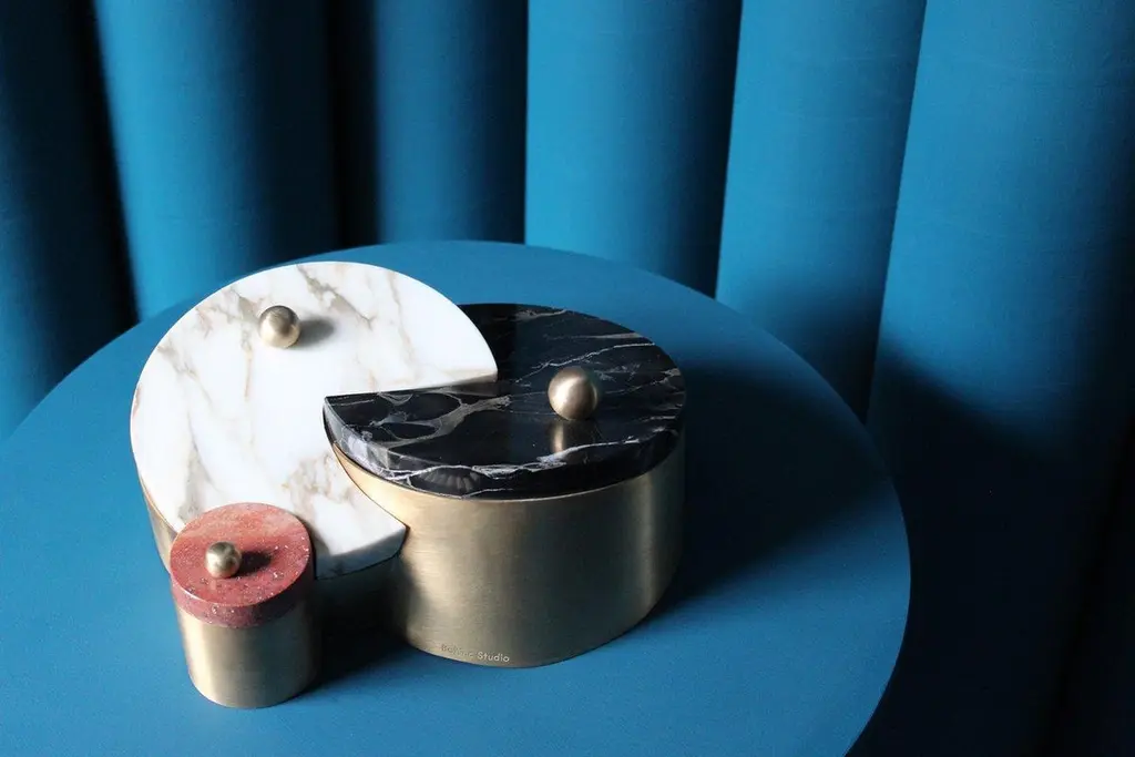 Saturn And Pluto Box, Marble And Brass, By Bohinc Studio
