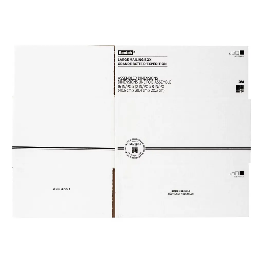 Scotch 16" X 12" X 8" Mailing Box White: Cardboard Shipping & Moving Packaging, No Closure, 1 Pack