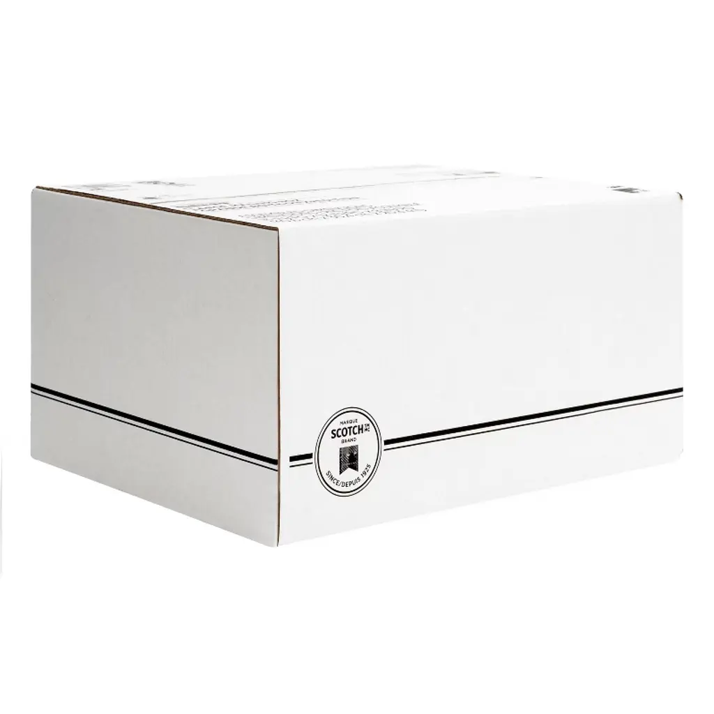 Ready to ship. Ready to move. Made to store. Our range of packaging supplies and tapes are designed to solve any packing problem. Scotch Mailing Boxes are ideal for mailing, moving, shipping and storing. Strength you can rely on and the box is easy to assemble. Ready to address with printed sender and receiver address labels and 'Handle with Care' printed in bold red print. White mailing box has excellent stacking strength while maintaining a lightweight design. Box is recyclable.