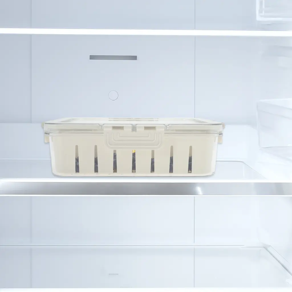 Feature:The lid has a hidden handle design for easy carryingWith ventilation holes, the drain basket can keep the product drained and keep the product dryThe food storage drain box comes with drain basketsSpecification:Color: White, TransparentMaterial: PET, PPSize: 23.5x16.5x6.5cm / 9.25''x6.5''x2.56''(L*W*H)Package Included:1 Set Drain Food Storage Containers