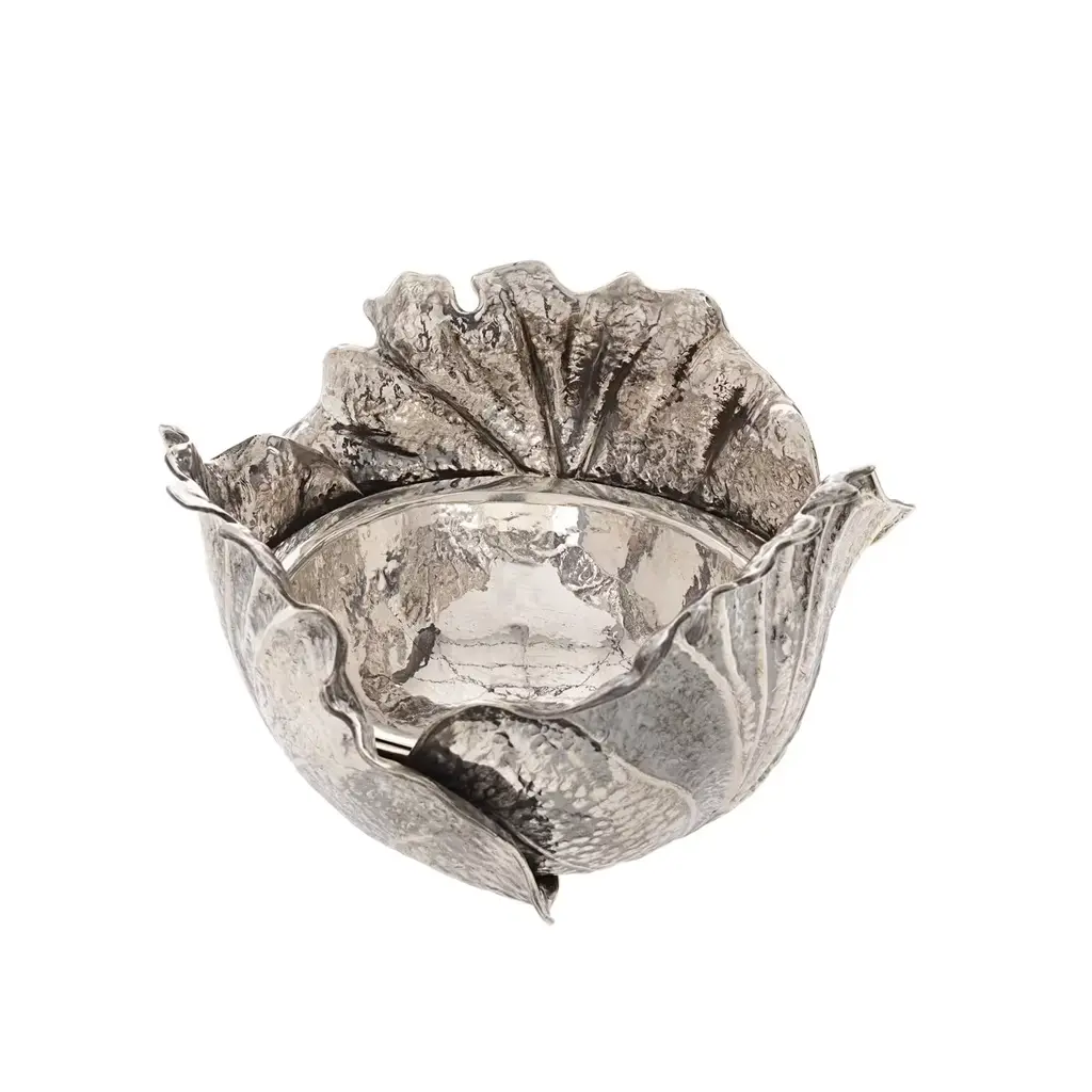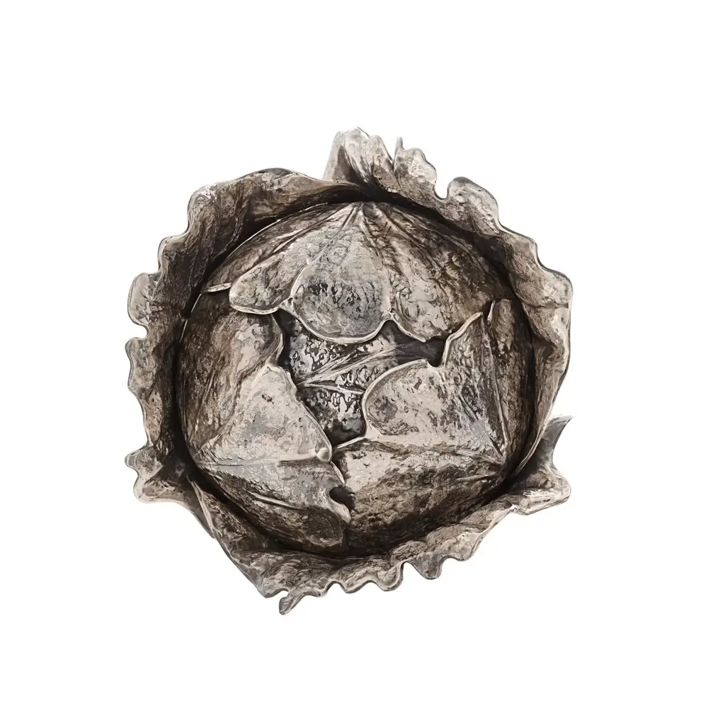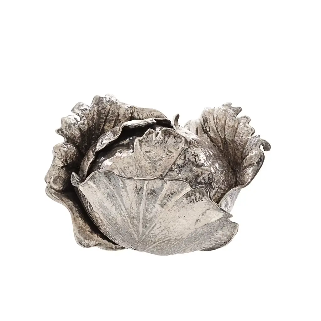 Sterling silver cabbage-box made entirely handcrafted by expert silversmiths, the Lisi brothers, in Florence. Its dynamic and detailed quality make it into a precious box. The interior features a detachable lining for easy maintenance.