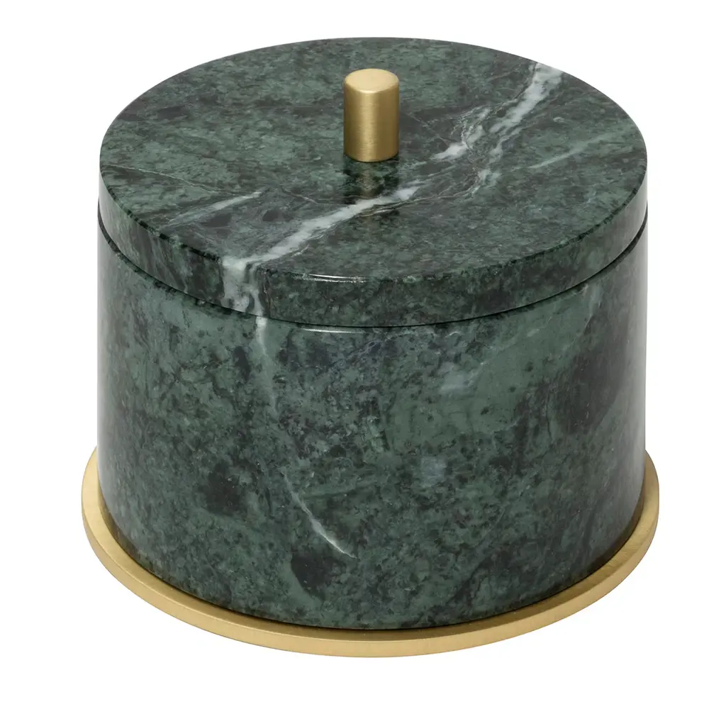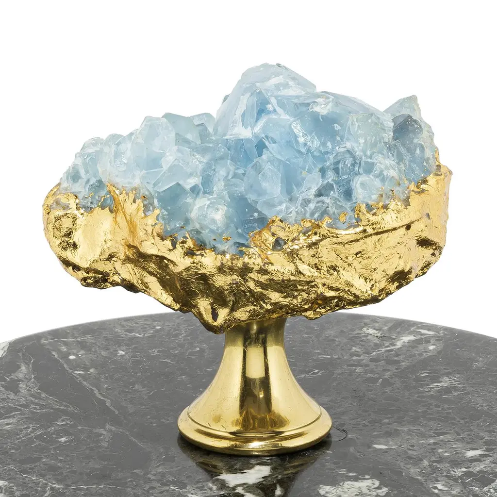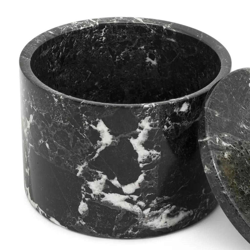 Box selenite and marble medium in black marblewith lid. With natural selenite on lid's top.