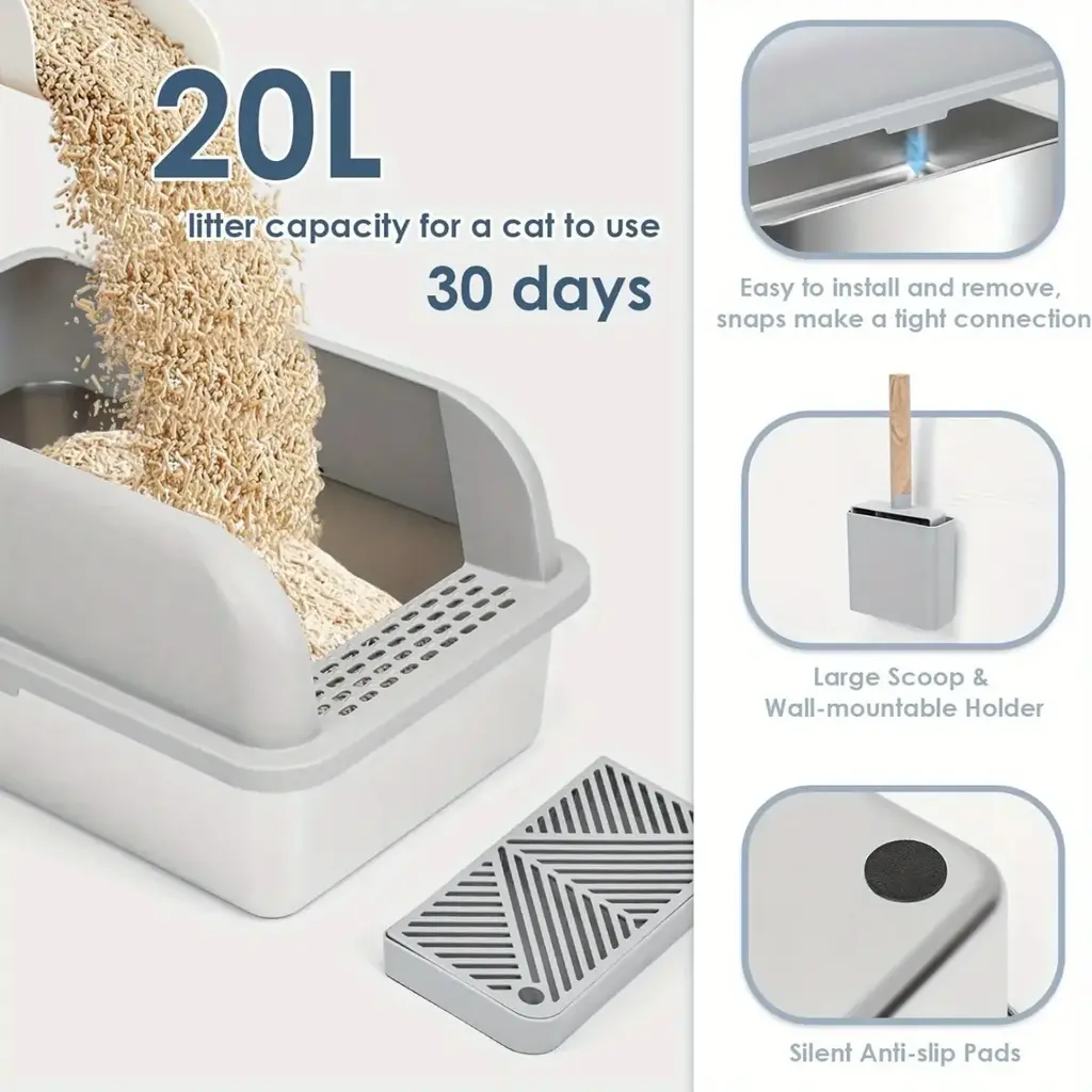 Self-Cleaning Cat Litter Box With Foot Pedal, Easy Waste Disposal, Odor Control, Large Capacity For Multiple Cats - Grey - Grey