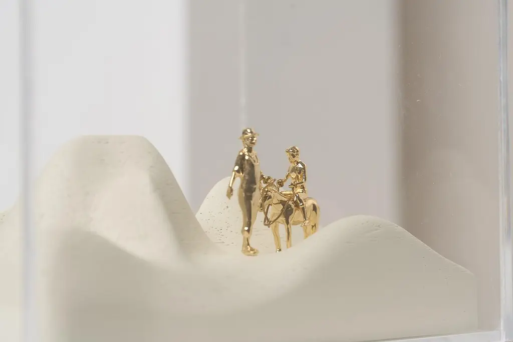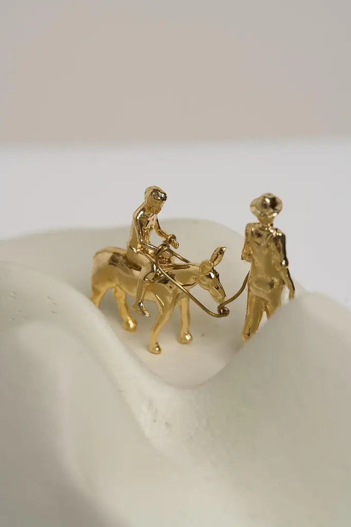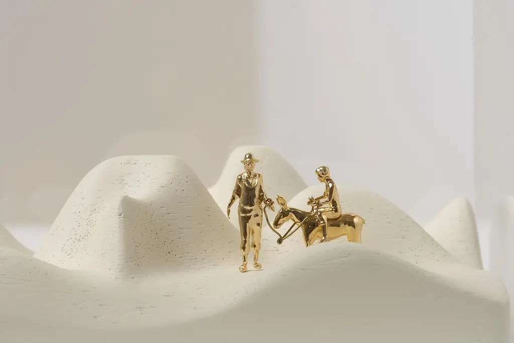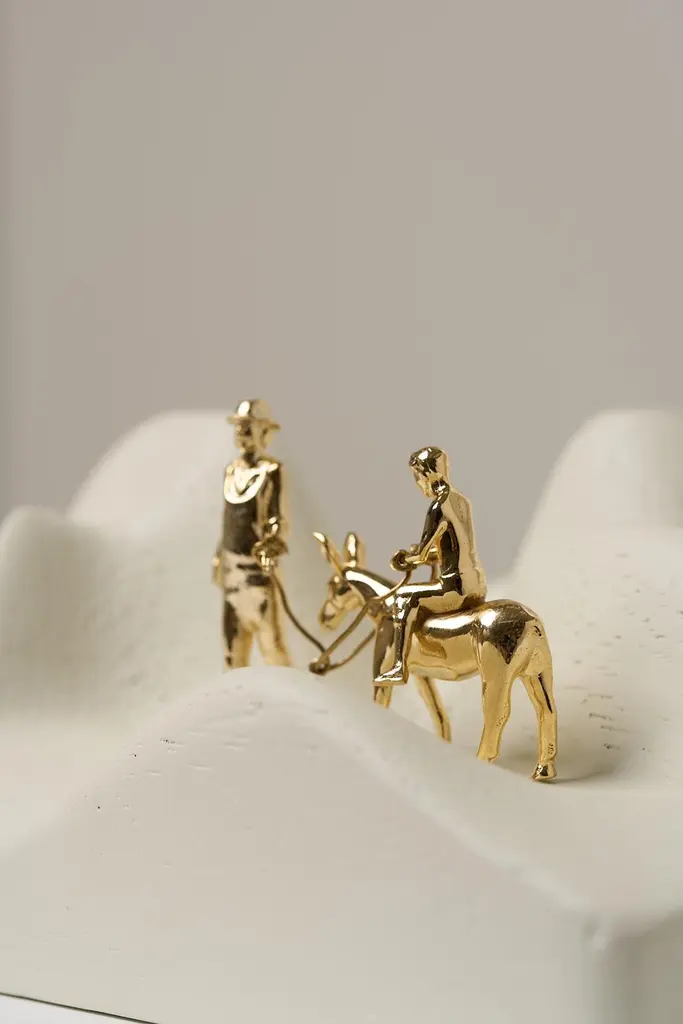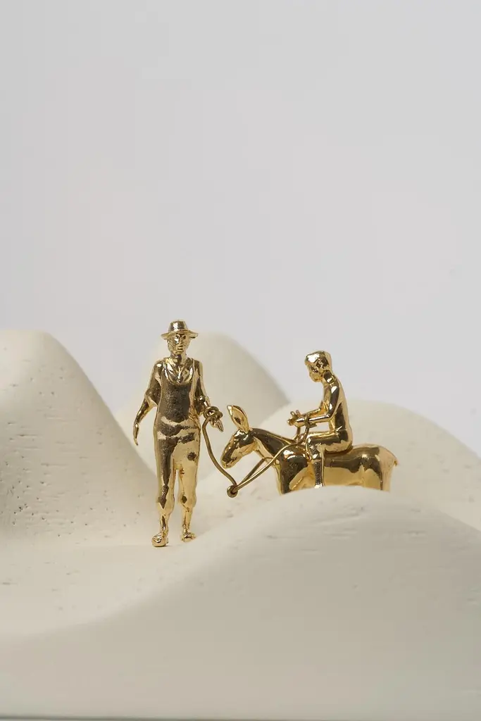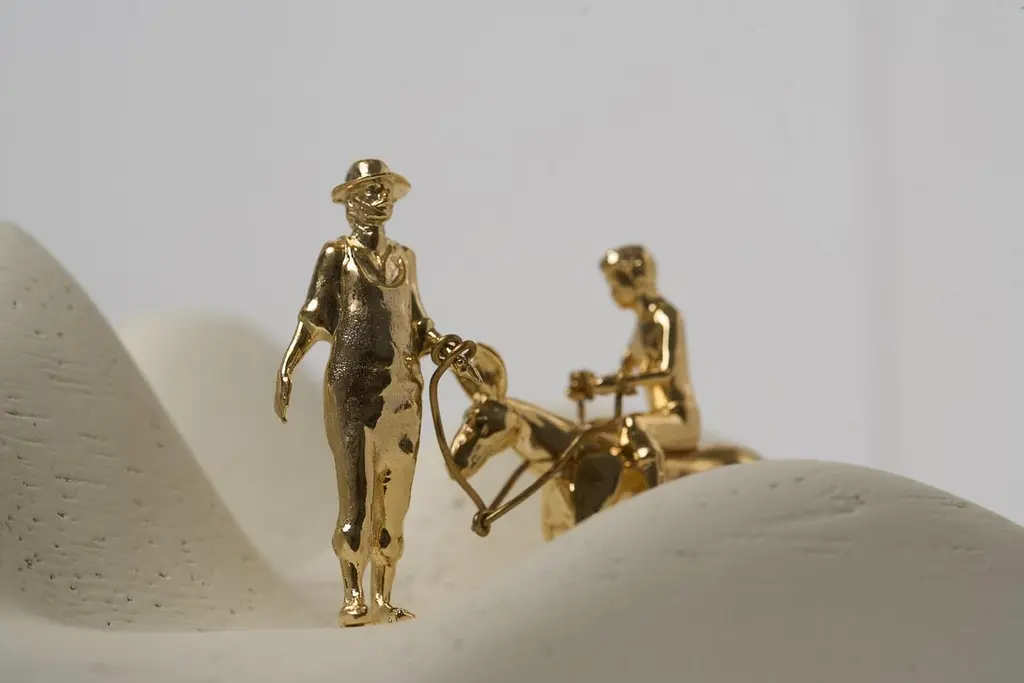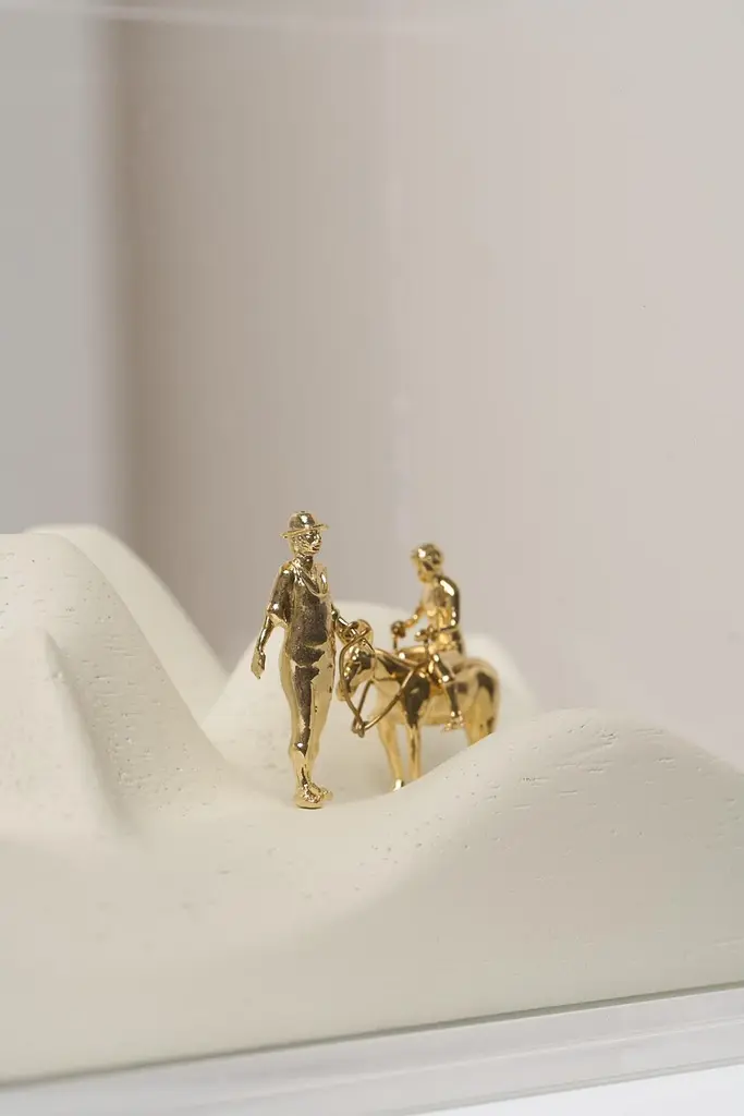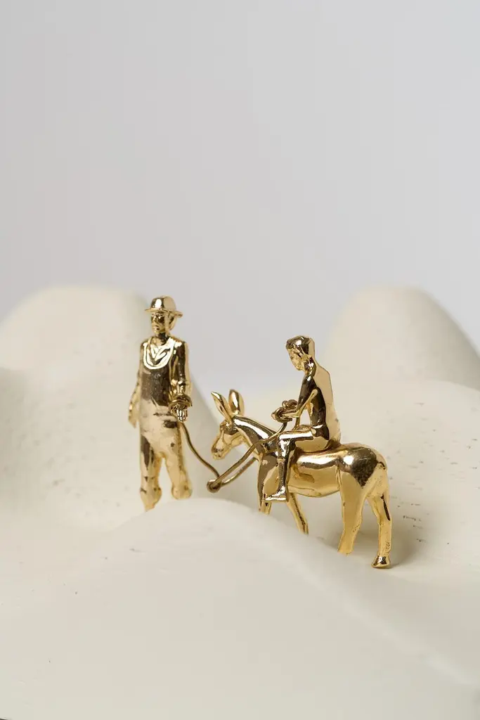 SCULPTURE SERIES SERTÃO"Sertão is where people's thoughts form stronger than the place."Guimarães RosaFrom afar, one hears the prophecy of Guimarães, of that place where those in charge are strong and cunning.Where the strong sun falls asleep towards the horizon, father and son return home with bodies heavy with fatigue. The agreste does not forgive, with a firm hand the father leads the donkey following slowly step by step.On his shoulders the weight of supporting the family, the dignified work that ennobles and makes him proud. The simple complicity of looking into the eyes, reading in every expression hardened by the sun, and managing to feel comfortable after a long day of hard work.The Sertão Series enchants with sculptures in simple verses, sung in a tone of affection from father to son._Material: Wood, Brass and Acrylic_Price of unit