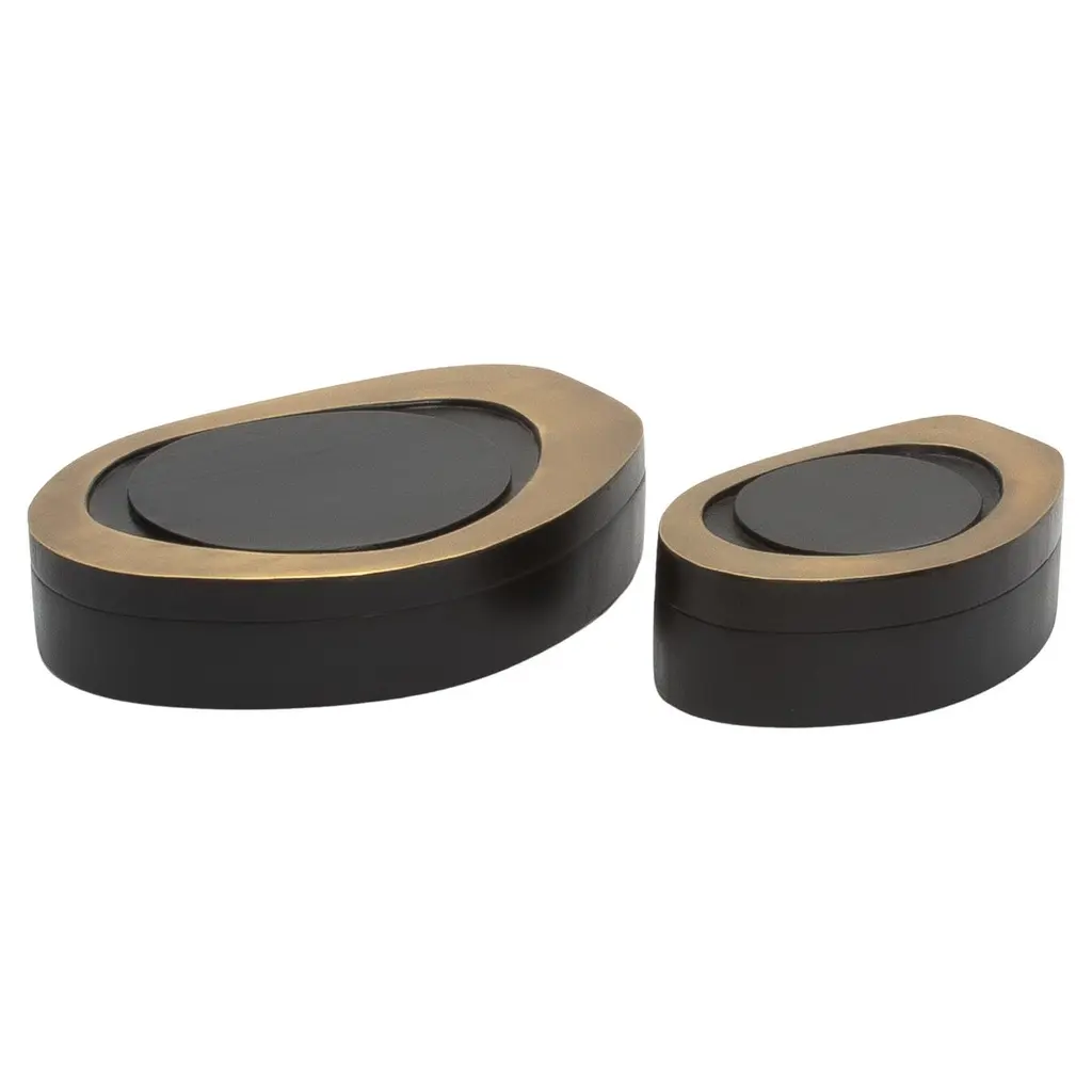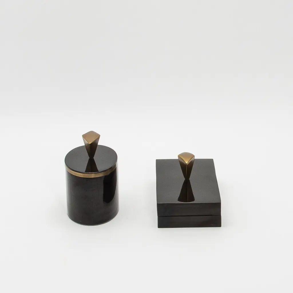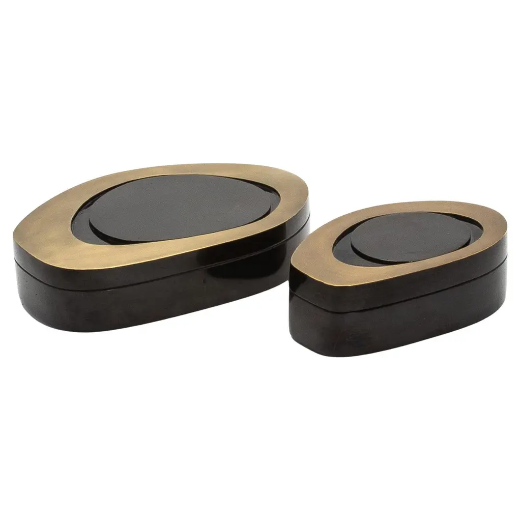 Set Of 2 Boxes In Black Shell With Bronze Patina Brass Details By Kifu Paris