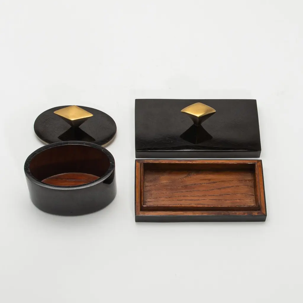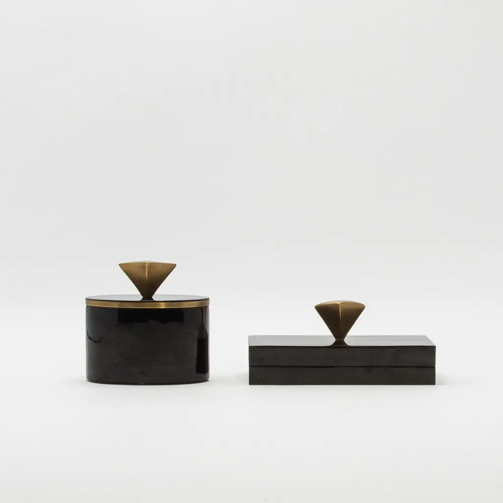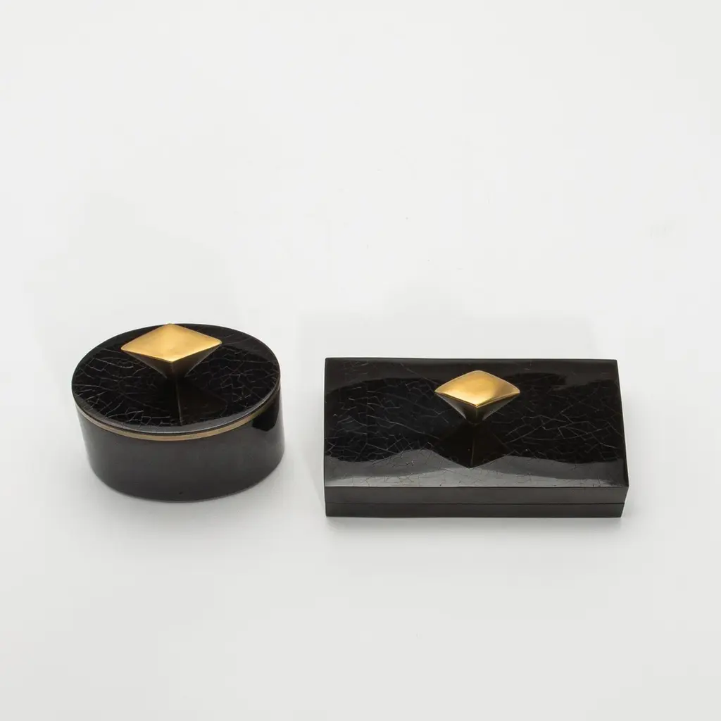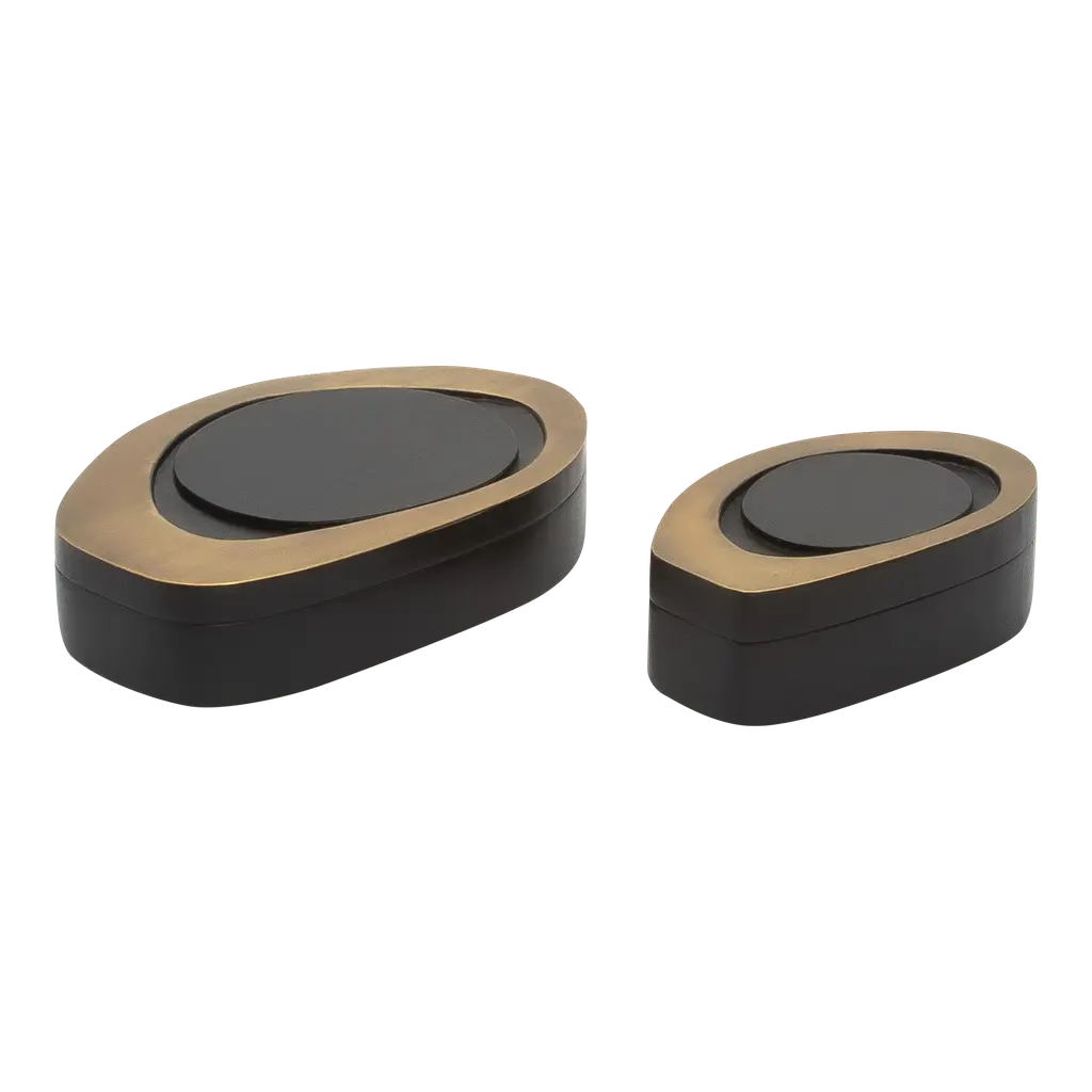 Set Of 2 Boxes In Black Shell With Bronze Patina Brass Details By Kifu Paris