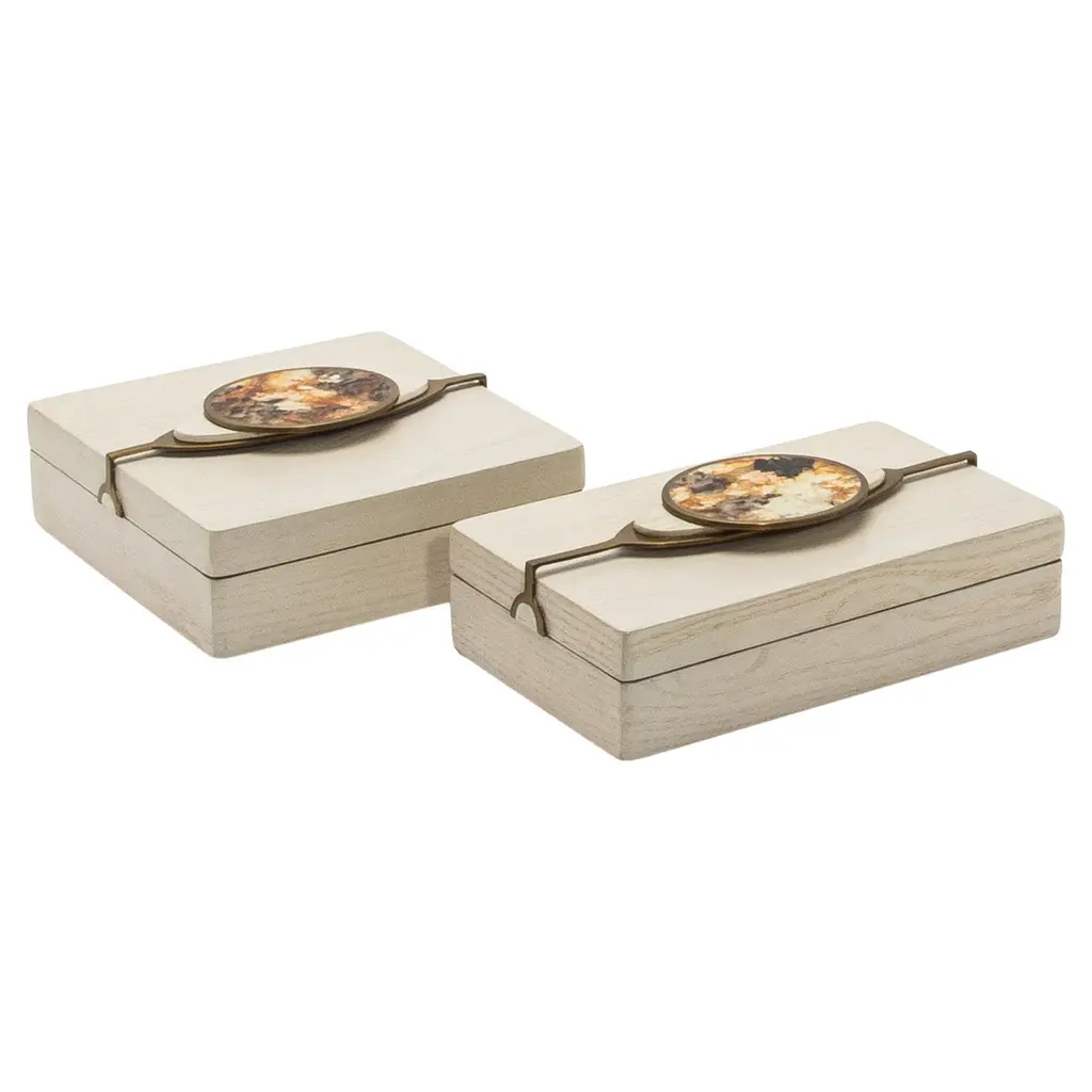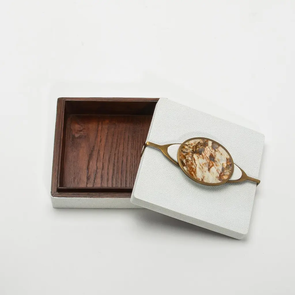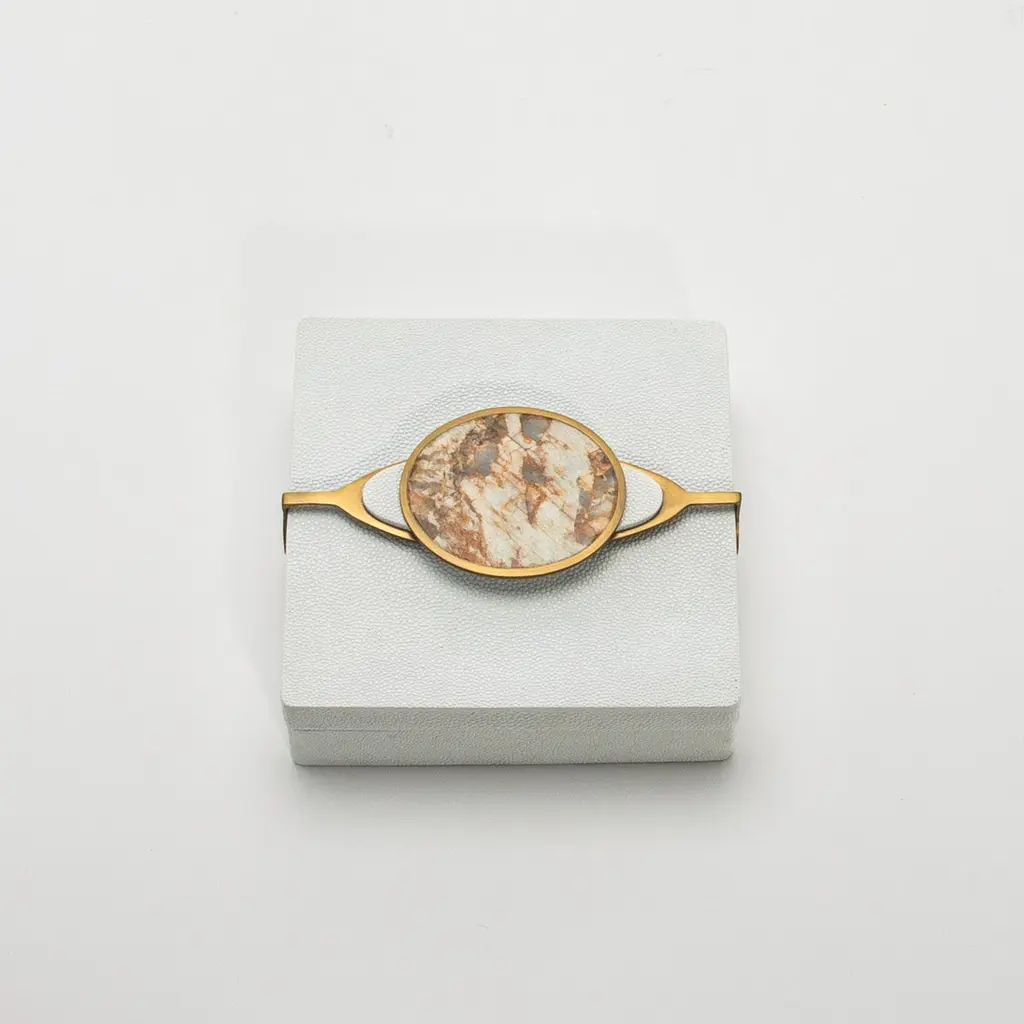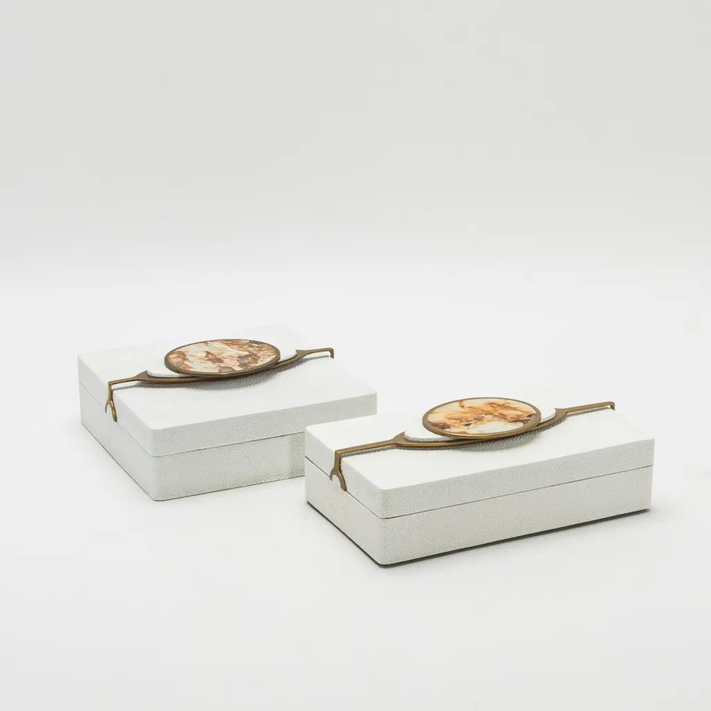 Set Of 2 Boxes In Shagreen With Semi-Precious Stone And Brass By Kifu Paris