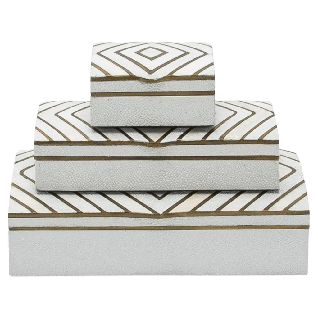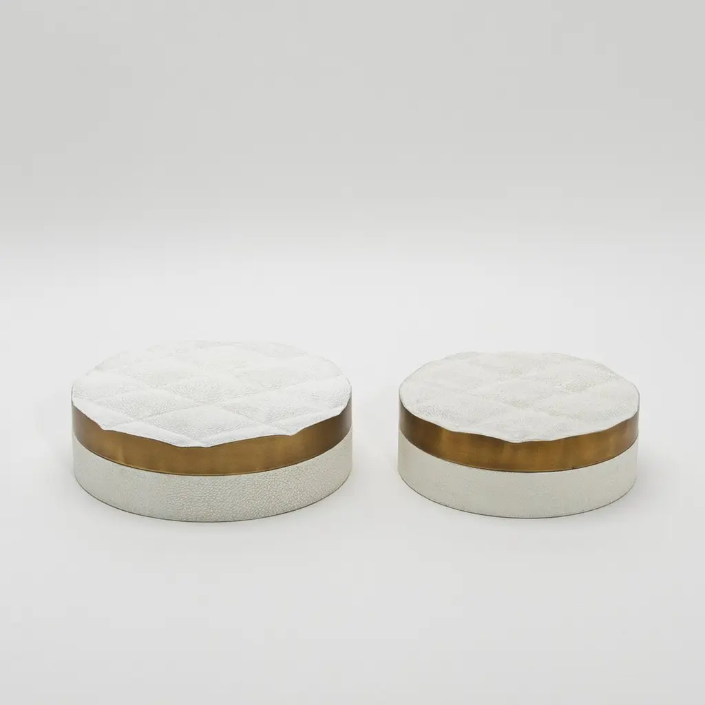 Set Of 2 Quilted Boxes In White Shagreen With Bronze Patina Brass By Kifu Paris