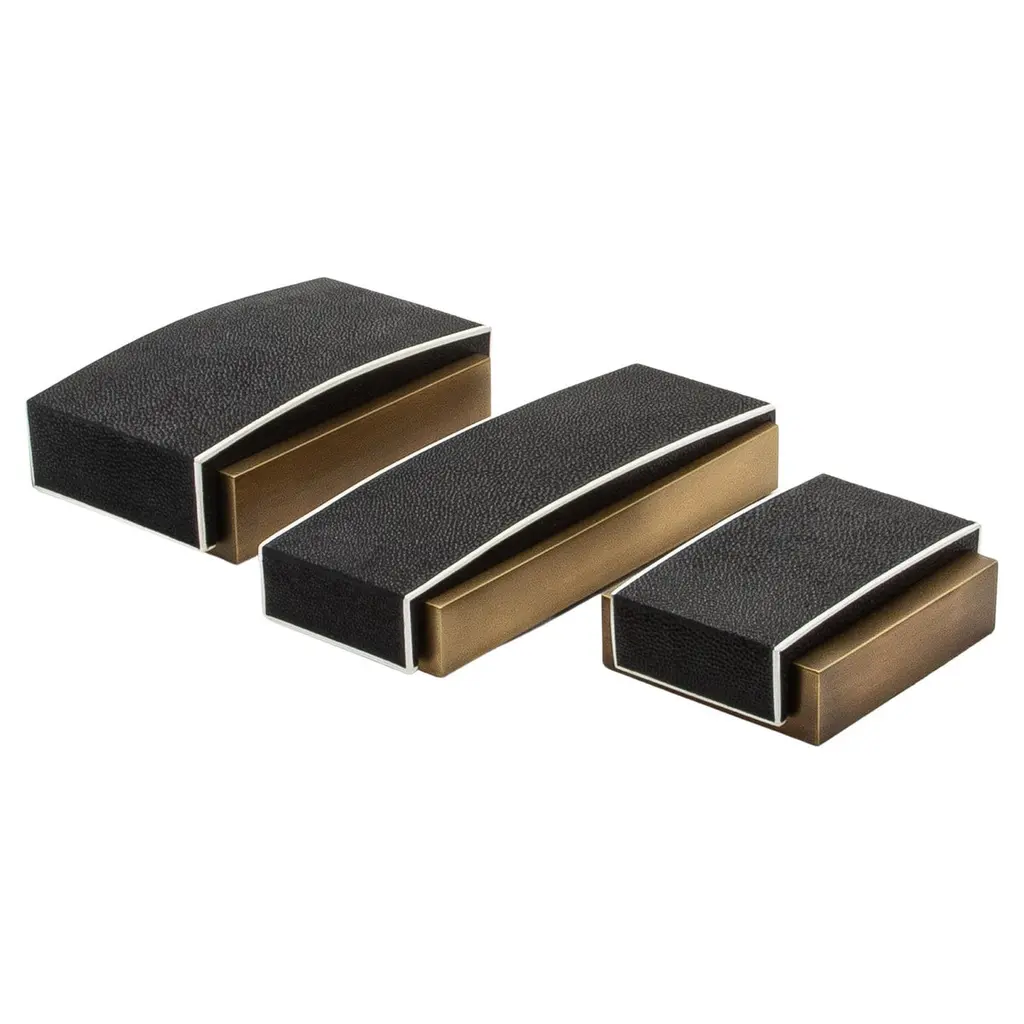 Set Of 3 Boxes In Black Shagreen With Brass Frame By R&y Augousti