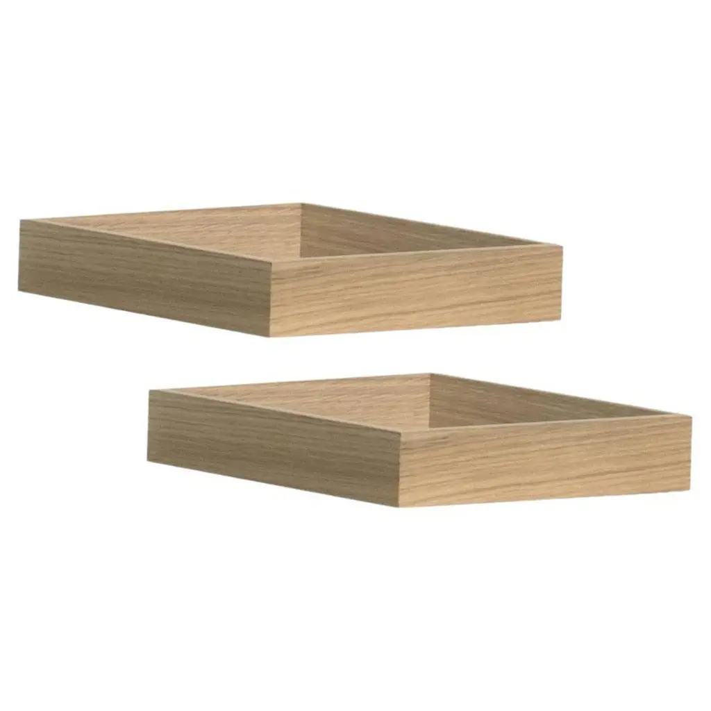 Set of 3 more boxes by MentemanoDimensions:W 20 x D 28 x H 5 cmW 20 x D 28 x H 25 cmW 20 x D 28 x H 15 cmMaterials: oakA tray and two boxes available in two dimensions with cover, made of wood with bronze mirror inserts as possible option.Mentemano is a design concept brand leading to a precise matter: is the “mente” (mind) leading the “mano” (hand) to create a piece of furniture or instead the opposite, having the mind as source of inspiration to conceive the project? All products designed by Nicola Gisonda are influenced by a unique architectural perception and based on focus to materials, space and function. ? The collection is fully Made in Italy, working with local artisans from Lombardy region. High quality, Italian craftsmanship and lifetime allure are the key points of products by Mentemano.Nicola GisondaBorn and raised in Milan, Italy, Nicola Gisonda is an architect and designer graduated at Politecnico di Milano.His activity ranges from redevelopment projects to industrial design, from design concept development for public spaces to interior design solutions.During the last years architect Gisonda has been particularly involved in the renovation of abandoned industrial areas. Among his known projects, we find Officine del Volo in Milan, Italy. Nowadays a real key place of the city, completely restored according to Gisonda own project and born from the ashes of former Officine Aeronautiche Caproni di Taliedo, historical aircraft factory during World Wars time.His activity as a designer, in addition to collaborations with different companies of the interior design world, currently sees him engaged in the creation of furniture accessories for his own brand: Mentemano. An idea born from the desire to offer furniture pieces with strong architectural nature, defined by clean and minimal lines in which matter and function finally find their meeting point.Learn more.