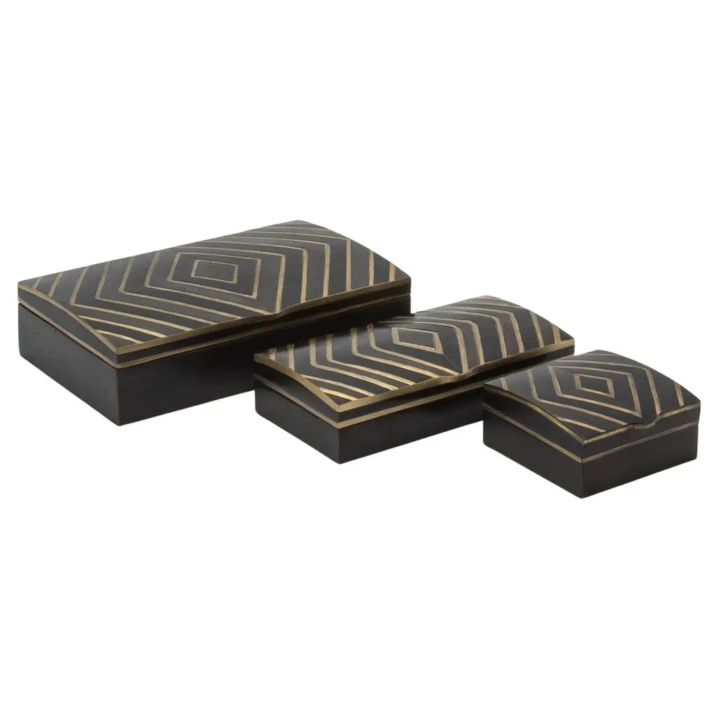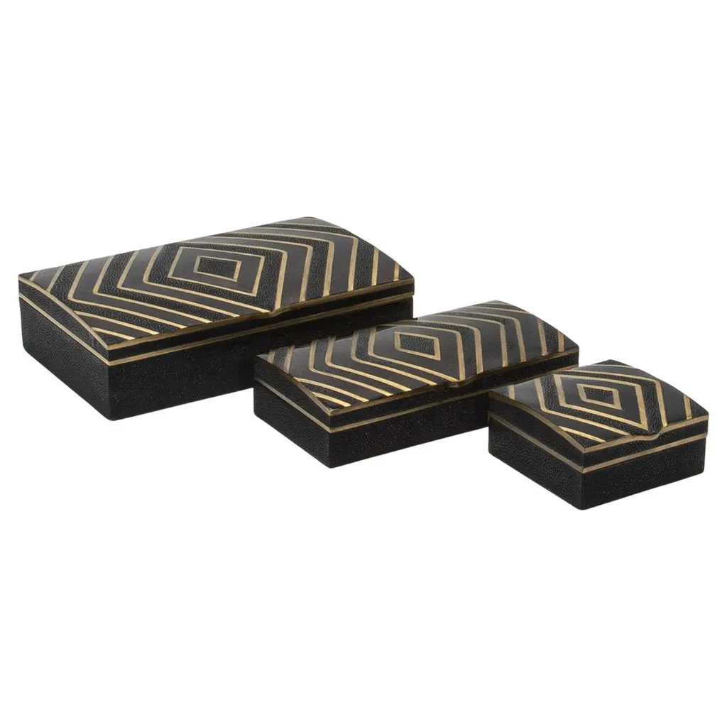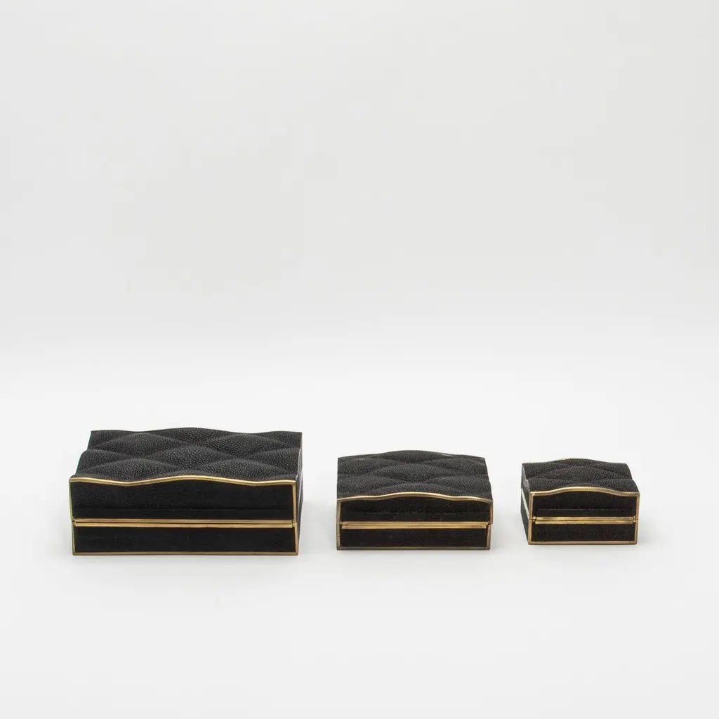 Set Of 3 Quilted Boxes In Black Shagreen With Bronze Patina Brass By Kifu Paris