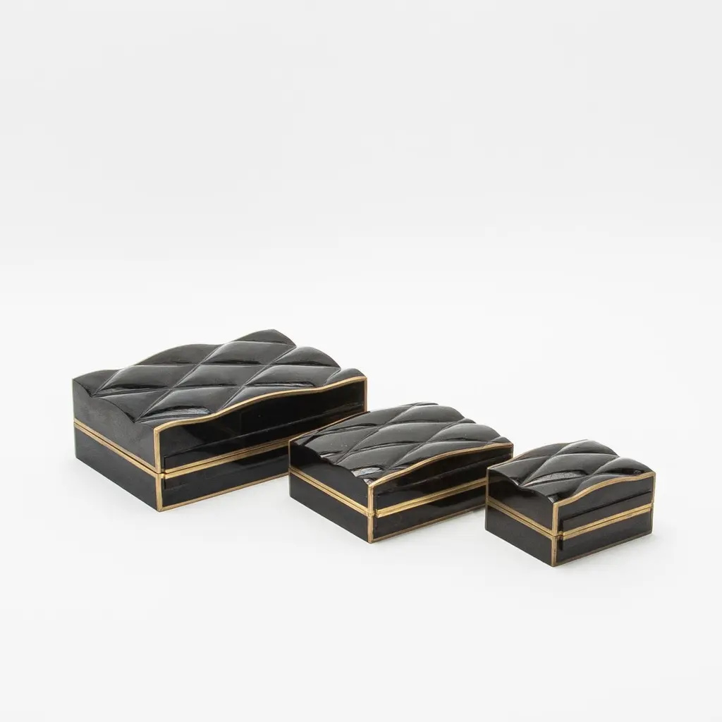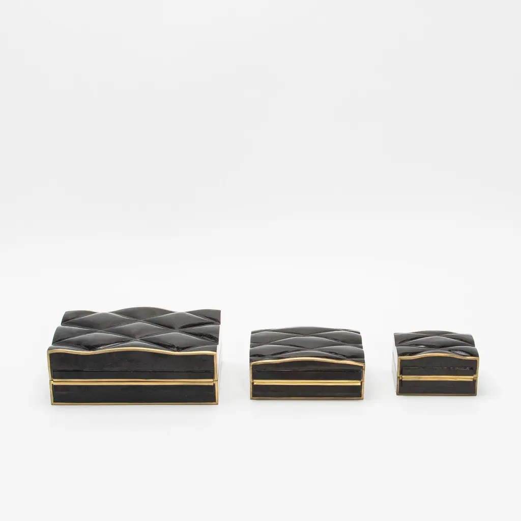 Set Of 3 Quilted Boxes In Black Shell With Bronze Patina Brass By Kifu Paris