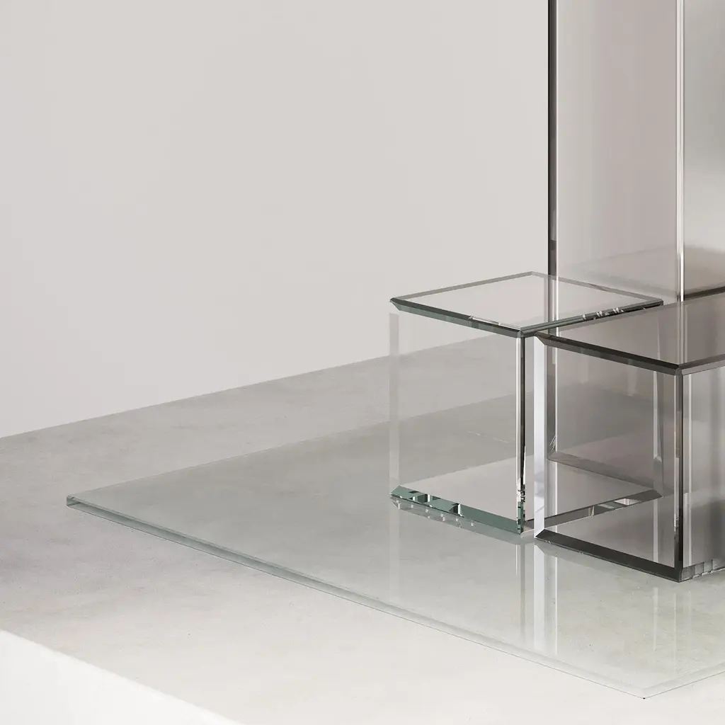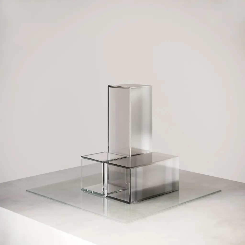 Set of 3 Sunrise Décor boxes by FormaminimaLimited editionDimensions: box 1: H 5 x L 10.5 x D 5 cm.Box 2: H 5 x L 5 x D 5 cm.Box 3: H 15 x L 5 x D 5 cm.Plate: H 0.3 x L 21 x D 21 cm.Materials: Handcrafted extra-clear crystal glass, mirror finish gradient.Weight: 260 gFormaminima is an emerging brand within the Italian Design panorama, prone to exploring the concept of object itself, in the field of lighting and product designin its broadest sense. This exploration starts in the first instance from the tradition, from the artisan mastery and that making full of charm, care, and perseverance.Each project is in fact crafted in those same places where the know-how is handed down and kept for generations, exclusively in our territory. Carefully selected workshops, ateliers, and studios become our precious partners in the creation of every single piece, conceived and designed by us. Therefore, in this latter, multiple knowledge is merged, especially that linked to high-quality materials, production processes, and an innovative aesthetic. Thus to achievewhat for us represents a contemporary Design Sleek Poetry.We create value through the masterly realization of unique pieces, as well as minimizing the intermediation between the Design product and its audience. Hence our projects result in the outcome of a direct collaboration between our designers and the excellence of Italian craftsmanship, along with its valuable know-how. To this end, we believe that a slow design process, together with its time of thought andresearch, is essential for what we believe Good Design may be.So this latter, passing from the inspiration to the concrete realization of each of our design creation, arrives directly to the customer.