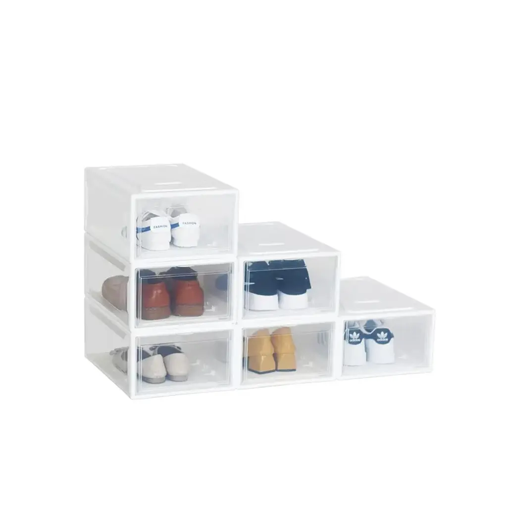 Set Of 6 Stackable Clear Plastic Shoe Storage Box