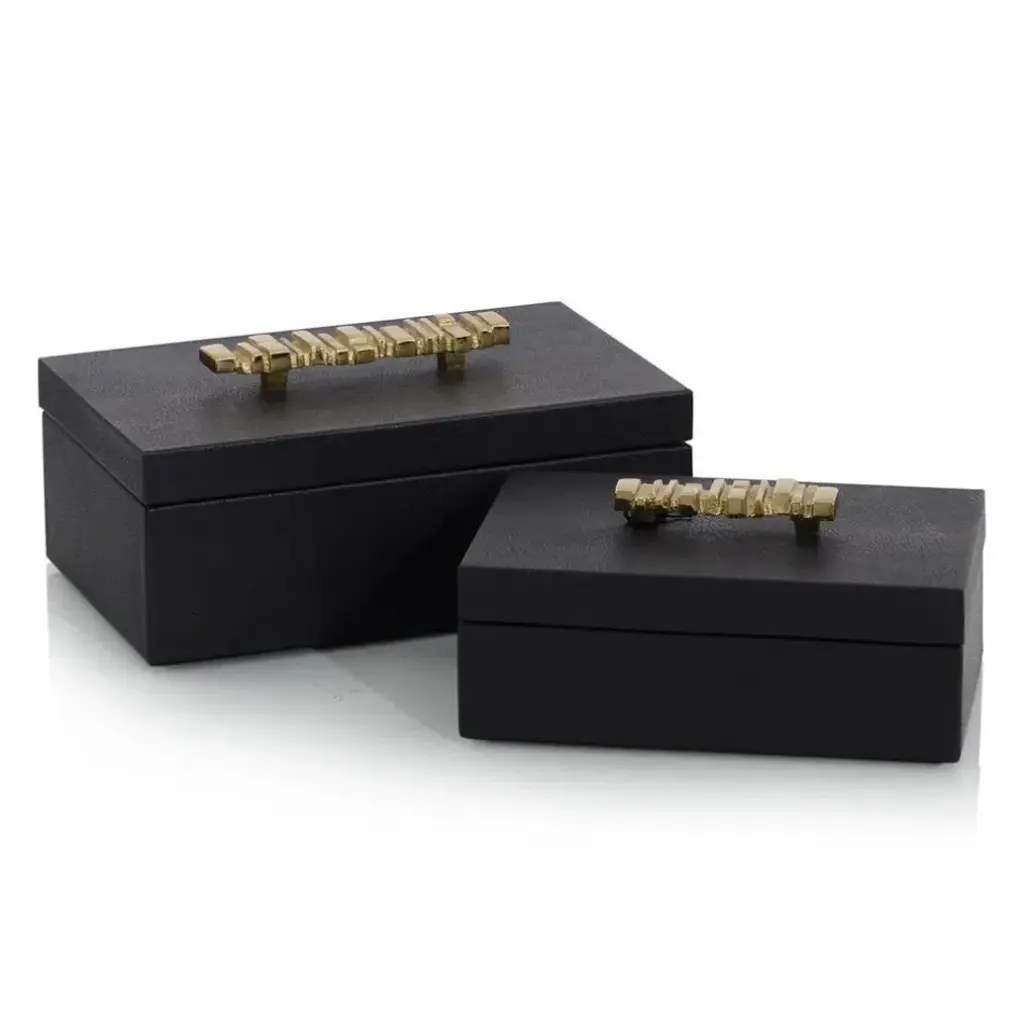 This elegant Leather Box Set combines modern craftsmanship with textural charm through its distinctive honeycomb-patterned brass buttons. Upholstered in a bold burnt orange faux leather, each box is both a stylish storage solution and a decorative accent. The hammered brass detail adds a tactile contrast and a hint of luxury, making this set perfect for organizing accessories, keepsakes, or desk essentials in style.
