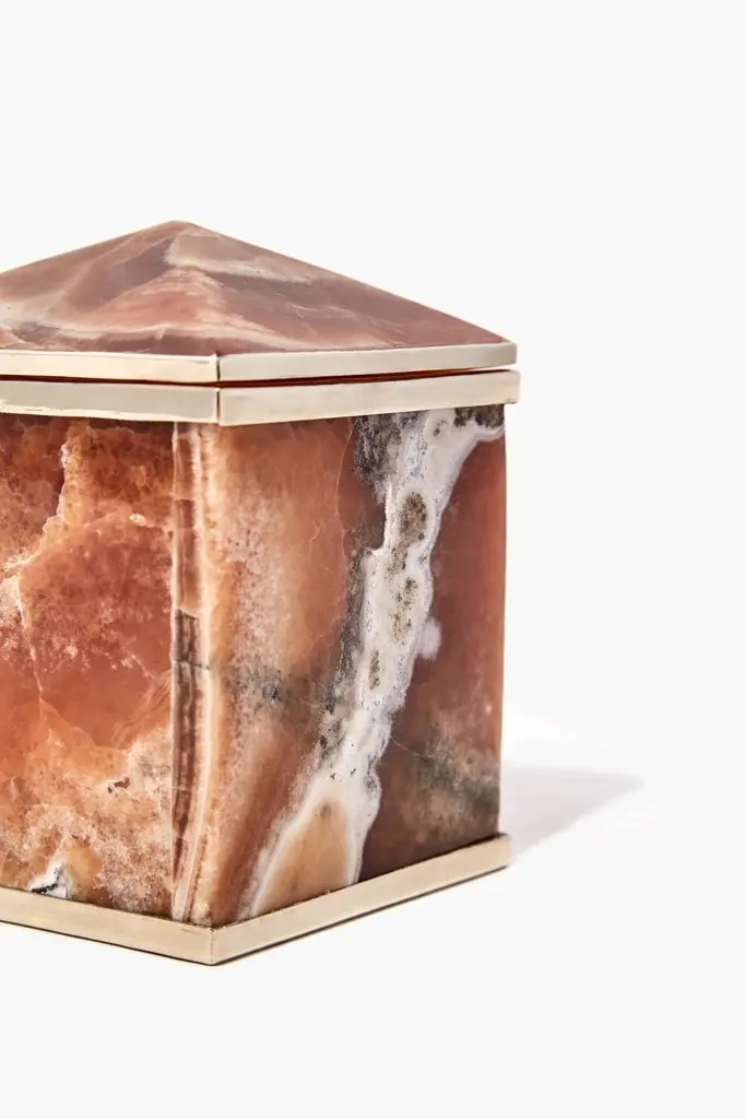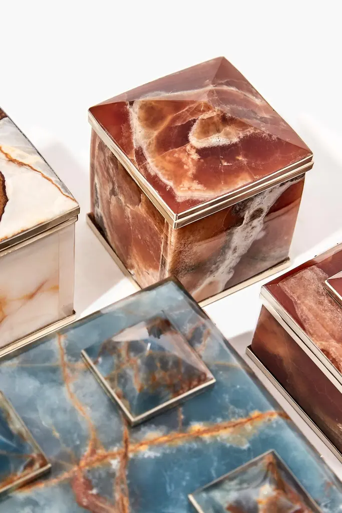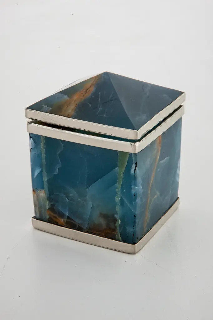 The shape of the inactive Tronador volcano reminded us of the pyramid shaped idea of our boxes that make up this collection. With a rectangular or square base, the box is a reflection of this magnificent inactive mount between Argentina and Chile, a part of the Andes Mountains.Our pieces are made by hand. One of a kind.All natural stones may vary in color.