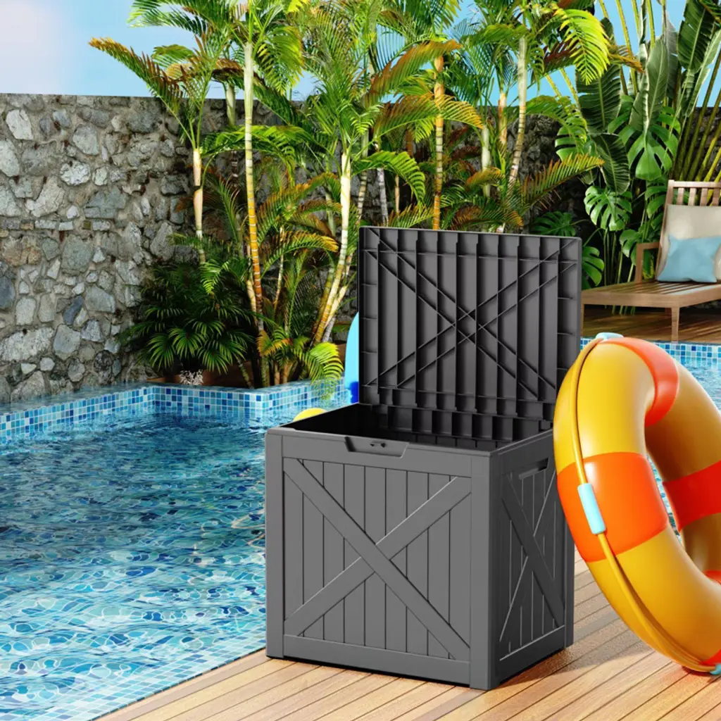 Sevobal Deck Boxes 32 Gal Outdoor Storage Deck Box, Weather-resistant Outdoor Bench With Stay-up Lid, Black, 22.09"*17.09"*20.87"