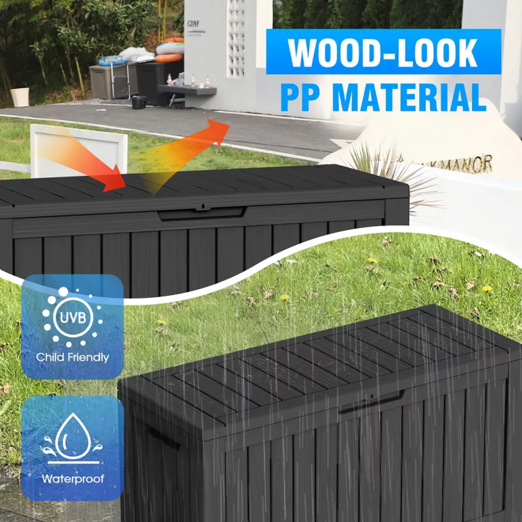 SEVOBAL Deck Boxes This deck box is as stylish as it is functional, seamlessly blending with any outdoor décor. Whether your space is modern or classic, it adds a touch of sophistication while providing ample storage. Its clean, timeless design enhances the look of your patio, garden, pool area, or even indoor spaces, making it the blend of form and function.