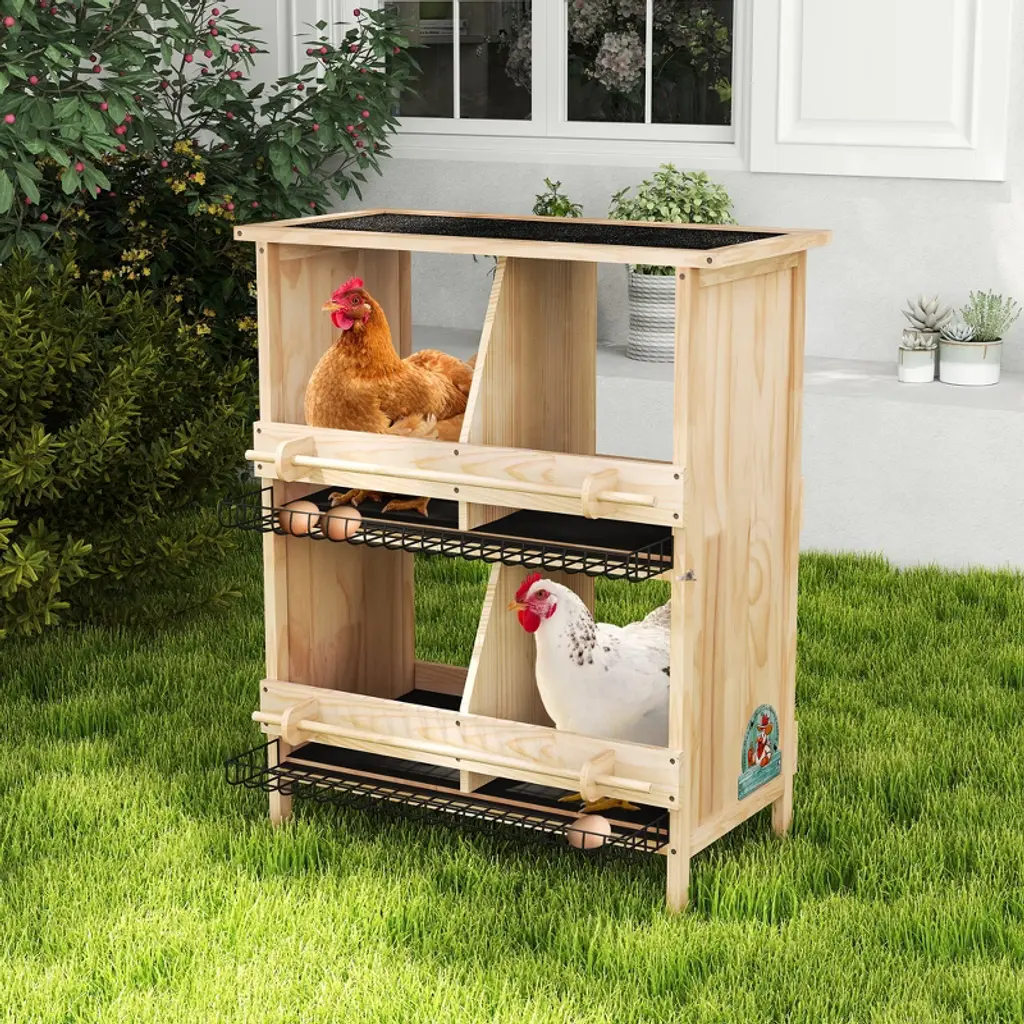 This chicken coop balances comfort, durability, and functionality for indoor/outdoor use. Its pine construction and waterproof roof resist the elements, while the multi-tier design with standing bars and privacy clapboards supports natural chicken behavior. The inclined egg-collection system and thermal insulation enhance convenience and care, making it a reliable choice for maintaining a healthy, stress-free flock. Ideal for hobby farmers or pet chicken owners seeking a low-maintenance, weather-ready coop.