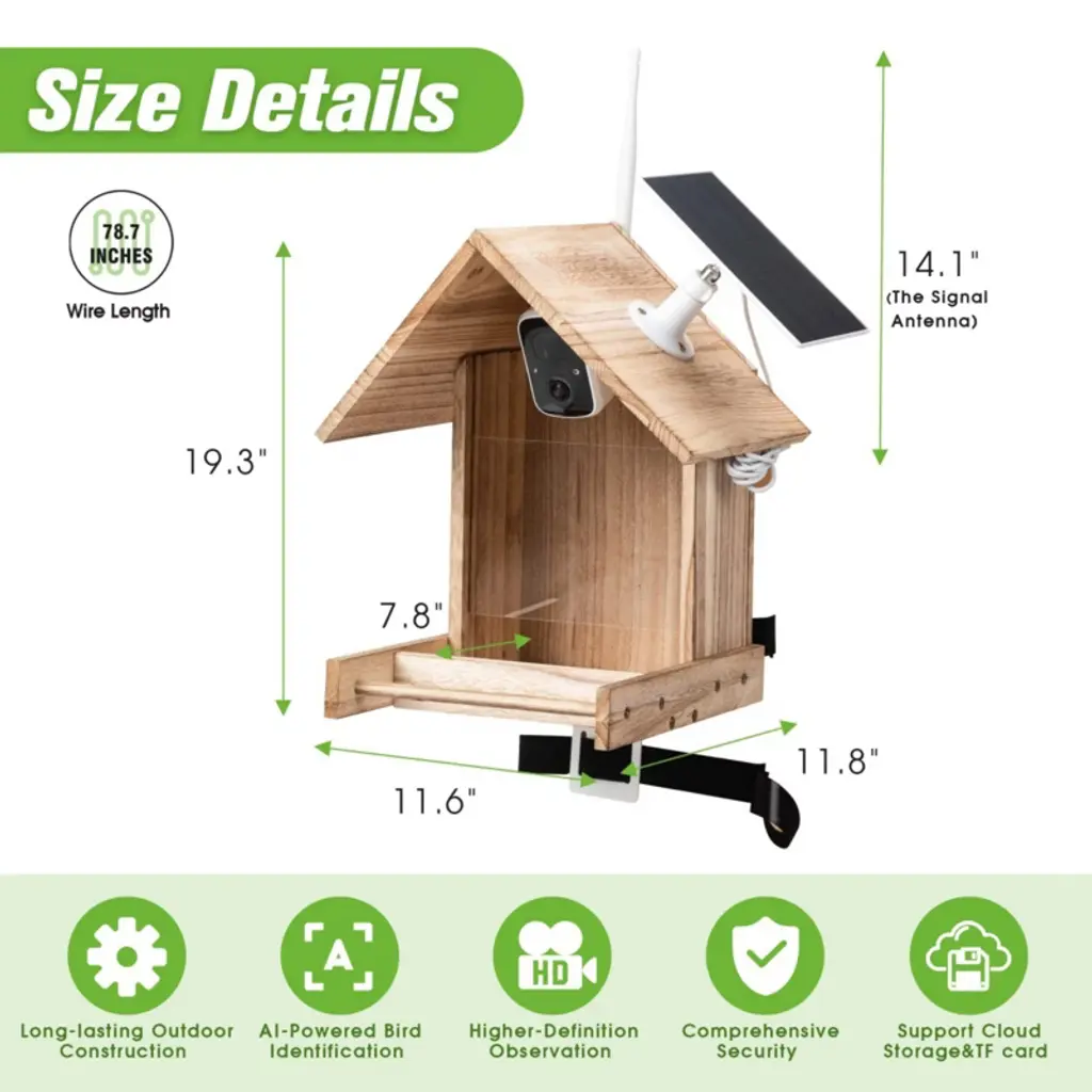 Sevobal Pet Food Storage Container Durable Outdoor Bird Feeder With Species Recognition And Safety Monitoring, Beige, 11.6"*11.8"*19.3"