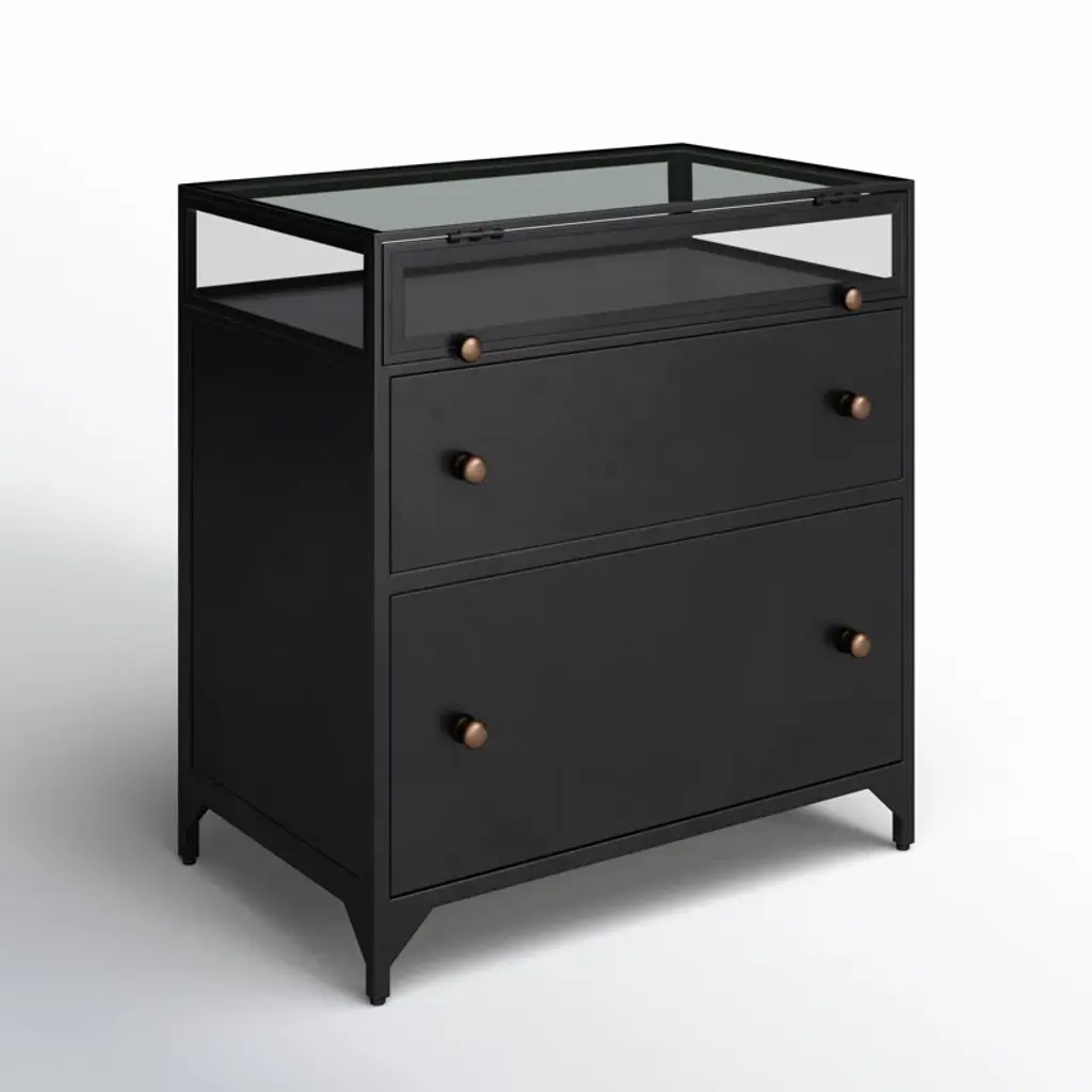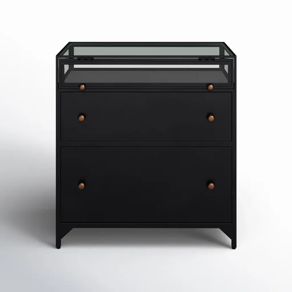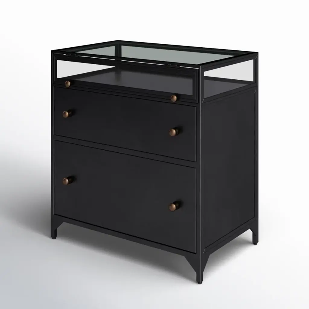 This nightstand is just the right accent piece to keep bedtime essentials close at hand. It has a clean-lined solid wood frame with a finish that's both stain- and scratch-resistant. We love how the tone brings an antique-inspired feel to your space. Two drawers and a central shelf give you lots of space for a variety of items. And the table top is a perfect platform for a reading lamp. Pair it with another to flank your bed.