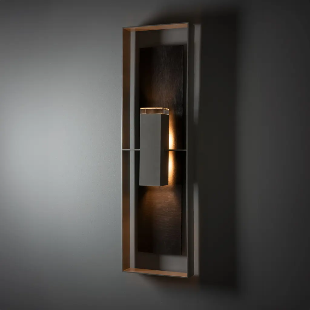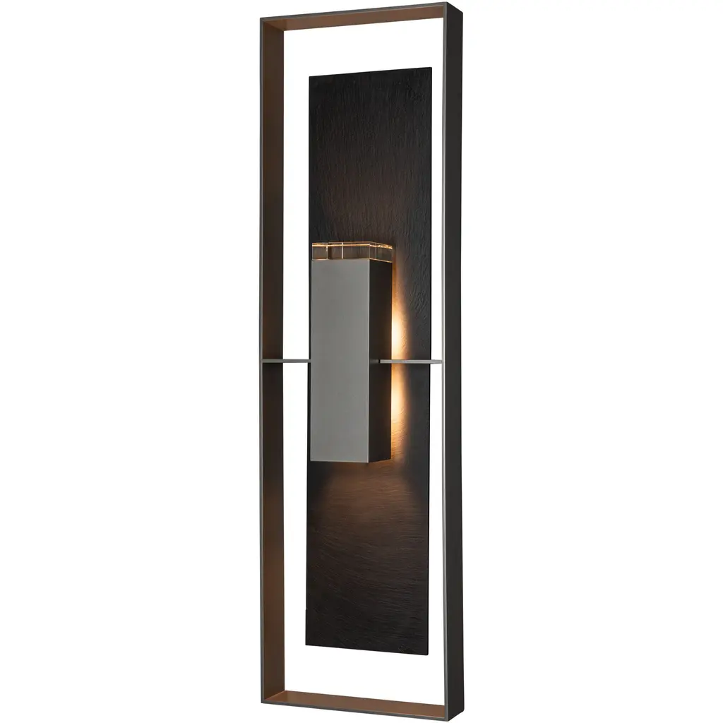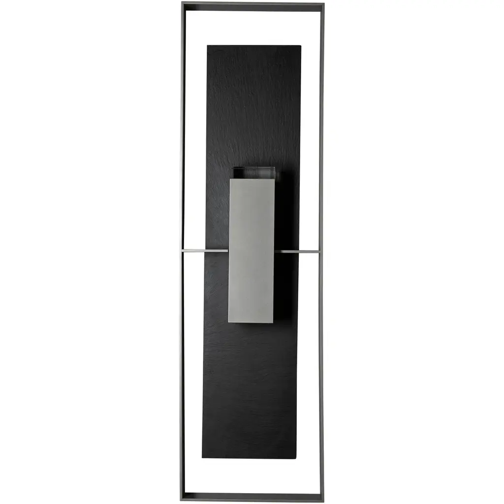 Make a great first impression with the Shadow Box Extra Tall w/Slate Outdoor Sconce standing nearly 4 ft high (45”). Designer David Martin, "was inspired by contemporary architecture but wanted a sensual minimalism accentuated by the dramatic lighting. Our Vermont black slate made for a natural backdrop." This large scale outdoor wall-mounted fixture has an aluminum frame and is offered with any of our robust Coastal Outdoor Finishes, all AAMA 2604-rated.