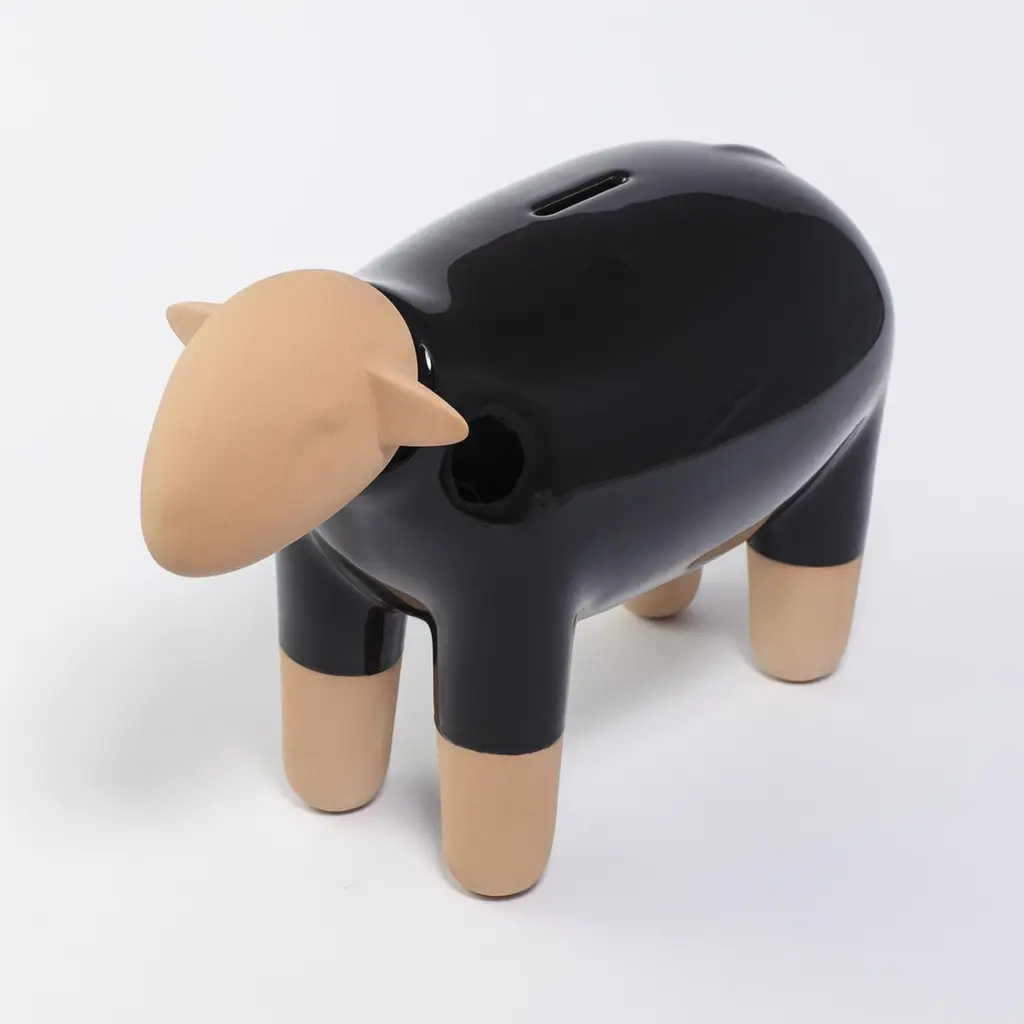 These splendid ceramic creations are born from the artistic laboratory of Mosche Bianche. The piggy bank, a means that has always been used to remind us of the importance of saving, takes on a playful and artistic role with the shape of a sheep, a mild animal present in many fairy tales symbolically associated with the group. In this case, the element becomes single, and of great importance. The ennobling of the animal and of the vehicle takes place by extrapolating it from its context and enriching it, thanks to the role it will have in our savings, reminding us of the importance of putting aside something small, every day, to find ourselves a great fortune tomorrow. Hence the importance of the individual and his perseverance, in saving and being a single individual, even if part of a group, able to take action thanks to his own willpower alone.This art object can have different colors. It is shaped and fired at 960 ° C for three days, before being glazed and finished. Each piece is therefore unique.