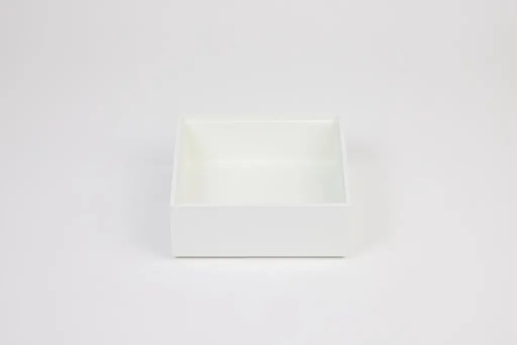 Minimalist, precious, distinctive. The SIGN BOX collection features a tray, two square boxes, and one rectangular box, available as a set or individually. Each box stands out with a seamlessly integrated handle, flush with the lid, revealing a delicate concave grip that invites touch. The interplay of matte and glossy lacquer, meticulously applied by hand in an exceptional workshop, highlights the purity of the lines and the richness of thecolors. Available in five color combinations, SIGN BOX embodies understated elegance and the beauty of detail.Glossy lacquered wood exterior, matte lacquer interior. Boxes available in 5 color combinations: Kerylos & Tangerine, White Sand & Mastic, Khaki & Mastic, Kerylos & Mastic or Milky White & All Black. Trays available in 4 colors: Kerylos, Tangerine, Mastic or All Black.Boxes and trays sold separately or as a set.Dimensions:Square box: 18 x 18 x H7 cmOval box: 18 x 36 x H7 cmTray: 37,5 x 37,5 x H2 cm